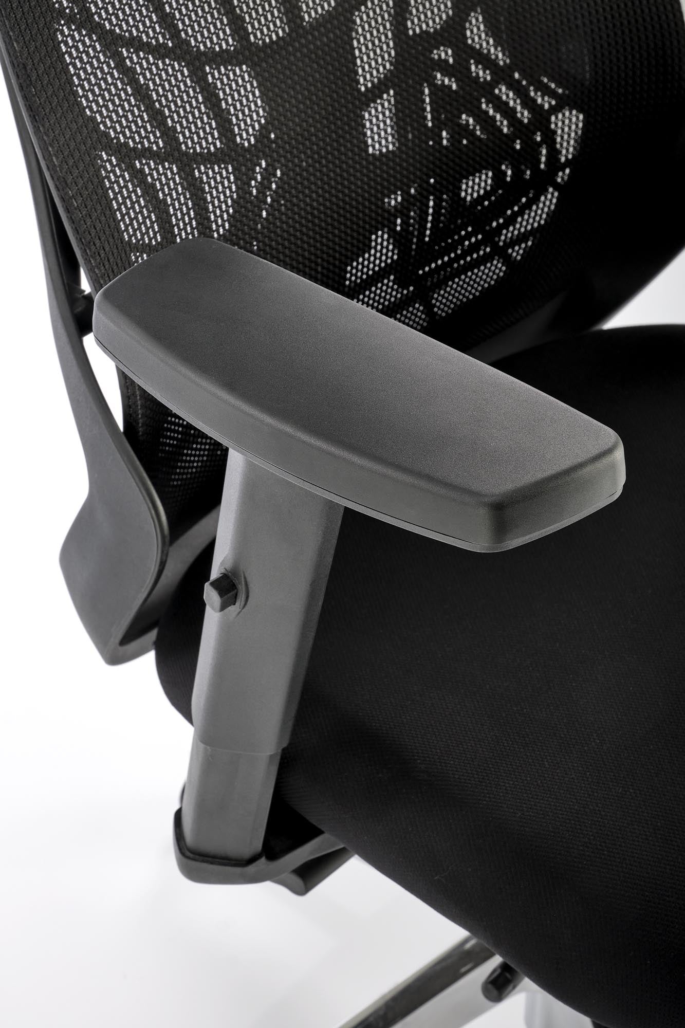 méretek: 66/67/115-125/38-48 cm, szinkronmechanika / állítható fejtámla / állítható kartámasz / állítható deréktámasz / csúszó ülés / alumínium alap, membránszövet / háló, szín: fekete