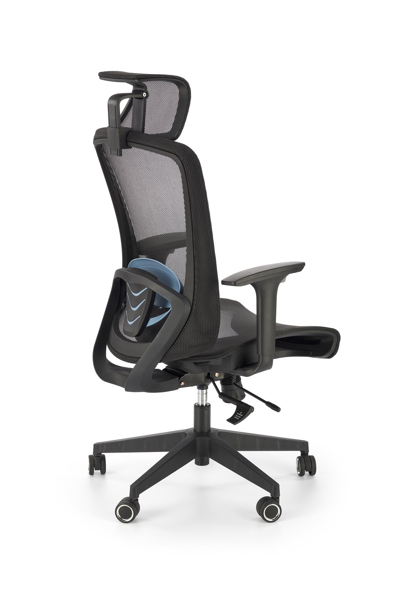 méretek: 63/63/117-125/42-50 cm, szinkronmechanika / állítható fejtámla / állítható kartámasz / állítható deréktámasz / csúszó ülés, membránszövet / háló, szín: fekete