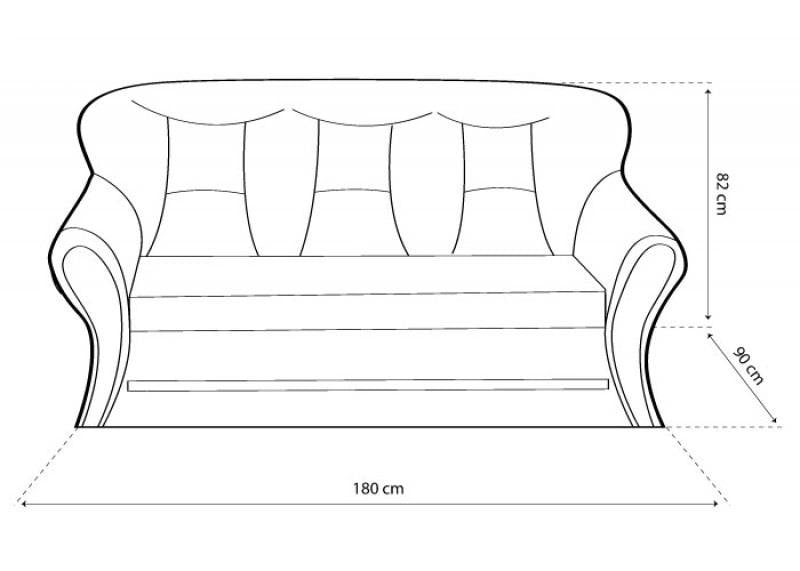 külső méret: 86 × 90 cm, ülőmagasság: 40 cm, beülőmélység: 56 cm, háttámlamagasság: 82 cm