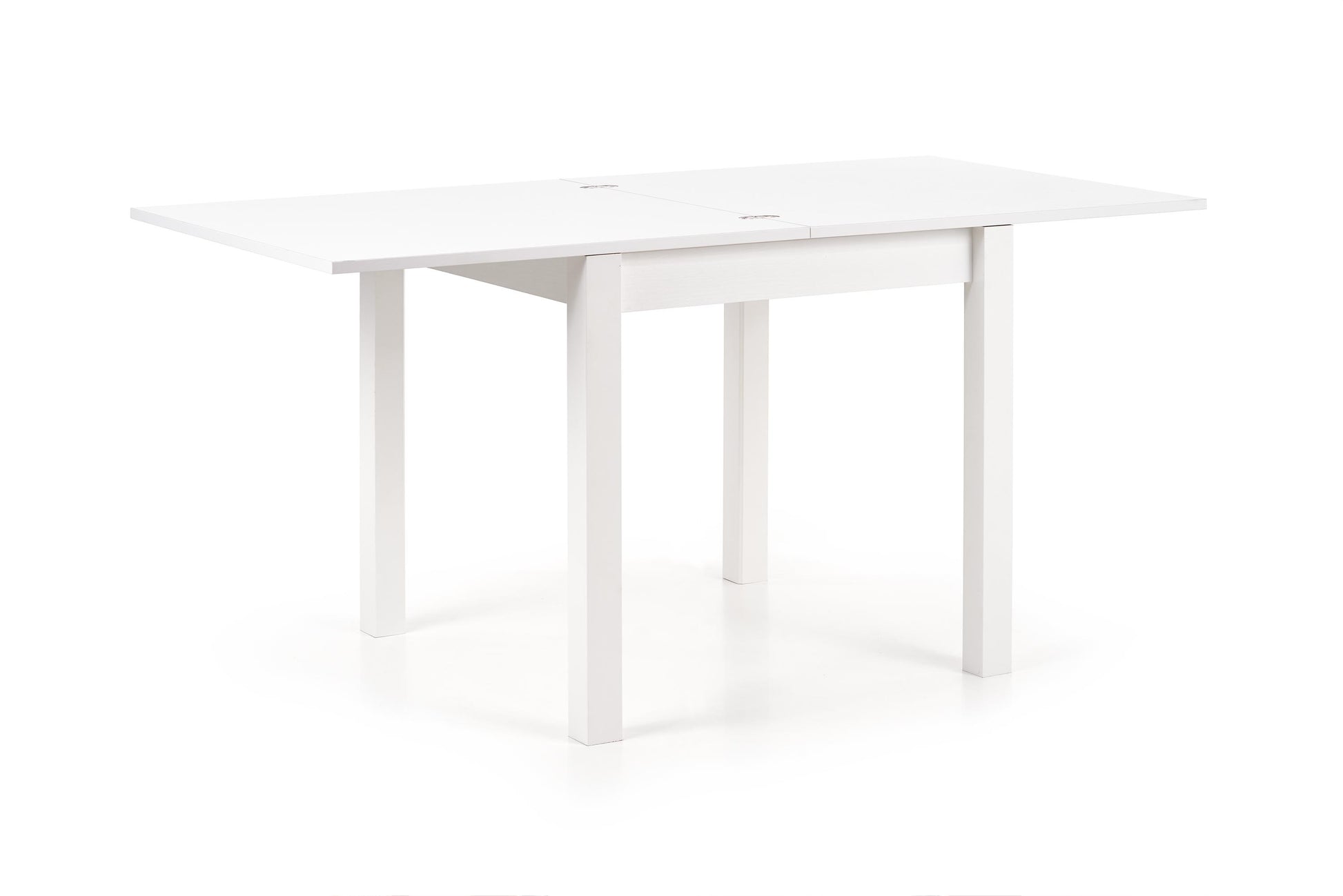 bővítőasztal, méretek: 80÷160/80/76 cm, anyaga: tető - laminált bútorlap, éleken ABS műanyag, lábak - laminált MDF, szín: fehér
