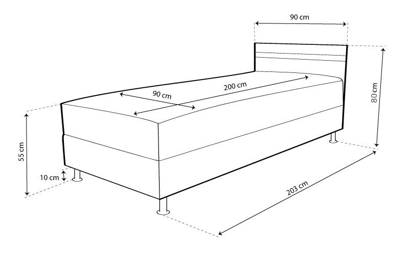 Fekvőfelület: 90 cm X 200 cm