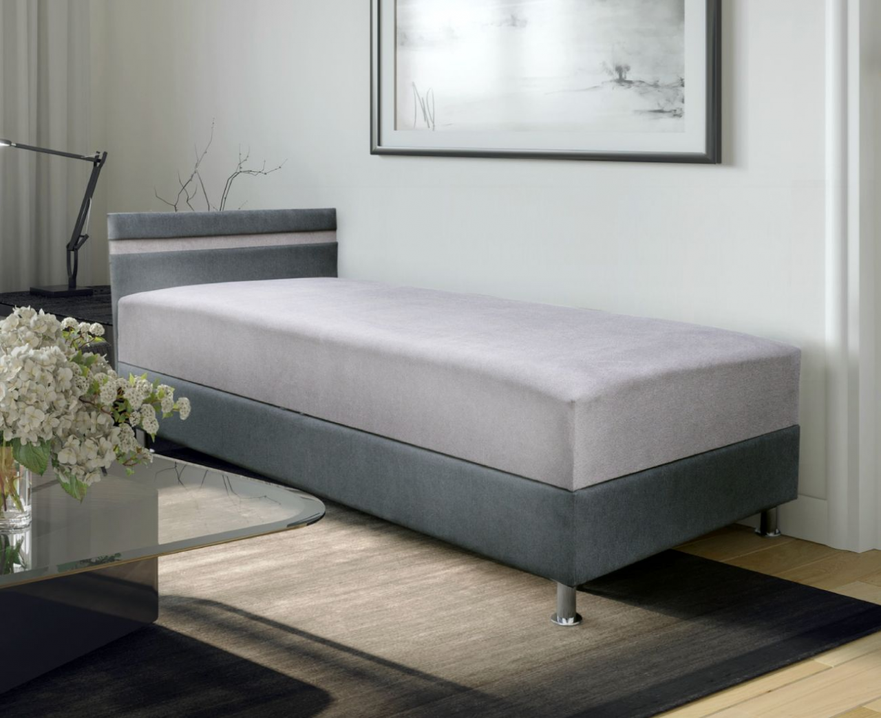 univerzális, fehér laminált ágyneműtartó, 10 cm-es króm láb, extra rugós, szövet, ágyneműtartós