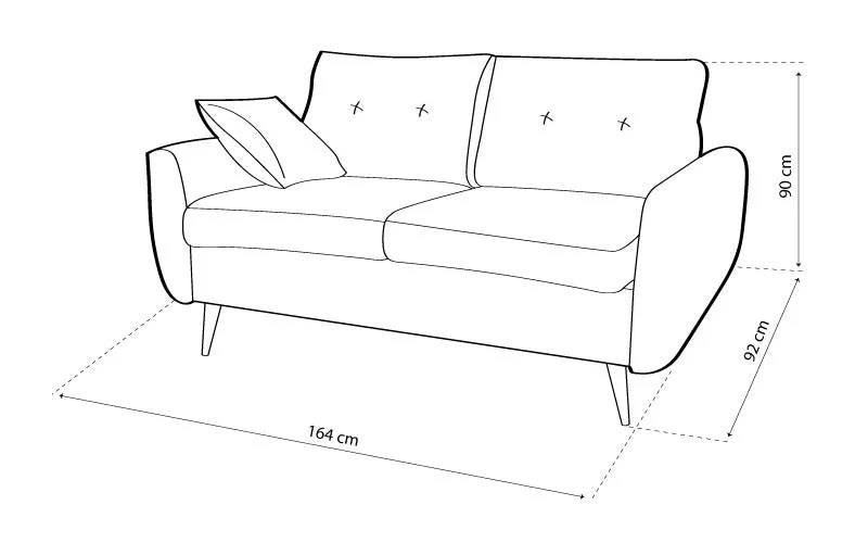 külső méret: 164 x 92 cm, ülőmagasság: 45 cm, beülőmélység: 79 cm, beülőmélység (párnával): 60 cm, háttámlamagasság: 90 cm