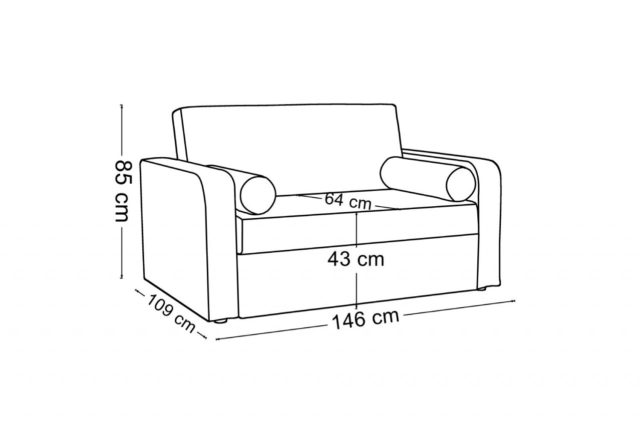 külső méret: 146 cm x 109 cm, fekvőfelület: 185 cm x 113 cm, ülőmagasság: 43 cm, beülőmélység: 64 cm, magasság: 85 cm