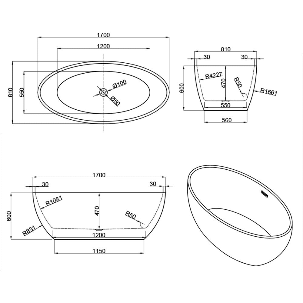 Kara szabadon álló fürdőkád 170x81x60 cm