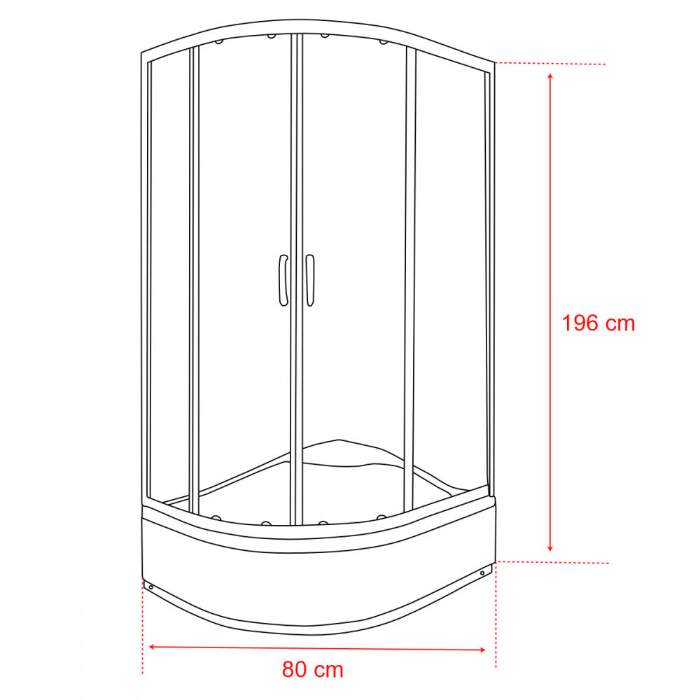 A funkcionalitás mellett természetesen a zuhanykabin megjelenésére is nagy figyelmet fordítottak. Üvegfelületének, króm profiljának és letisztult, modern vonalainak köszönhetően elegáns megjelenést teremt minden fürdőszábanak. A beépített ülőrész biztosítja a termék kényelmét. Bal vagy jobb beépítéssel választható. A zuhanykabin 100x80x196 cm-es.A csomag tartalmazza: kabinajtó,oldalfalak,mélytálca,szifon,profilok,görgők
