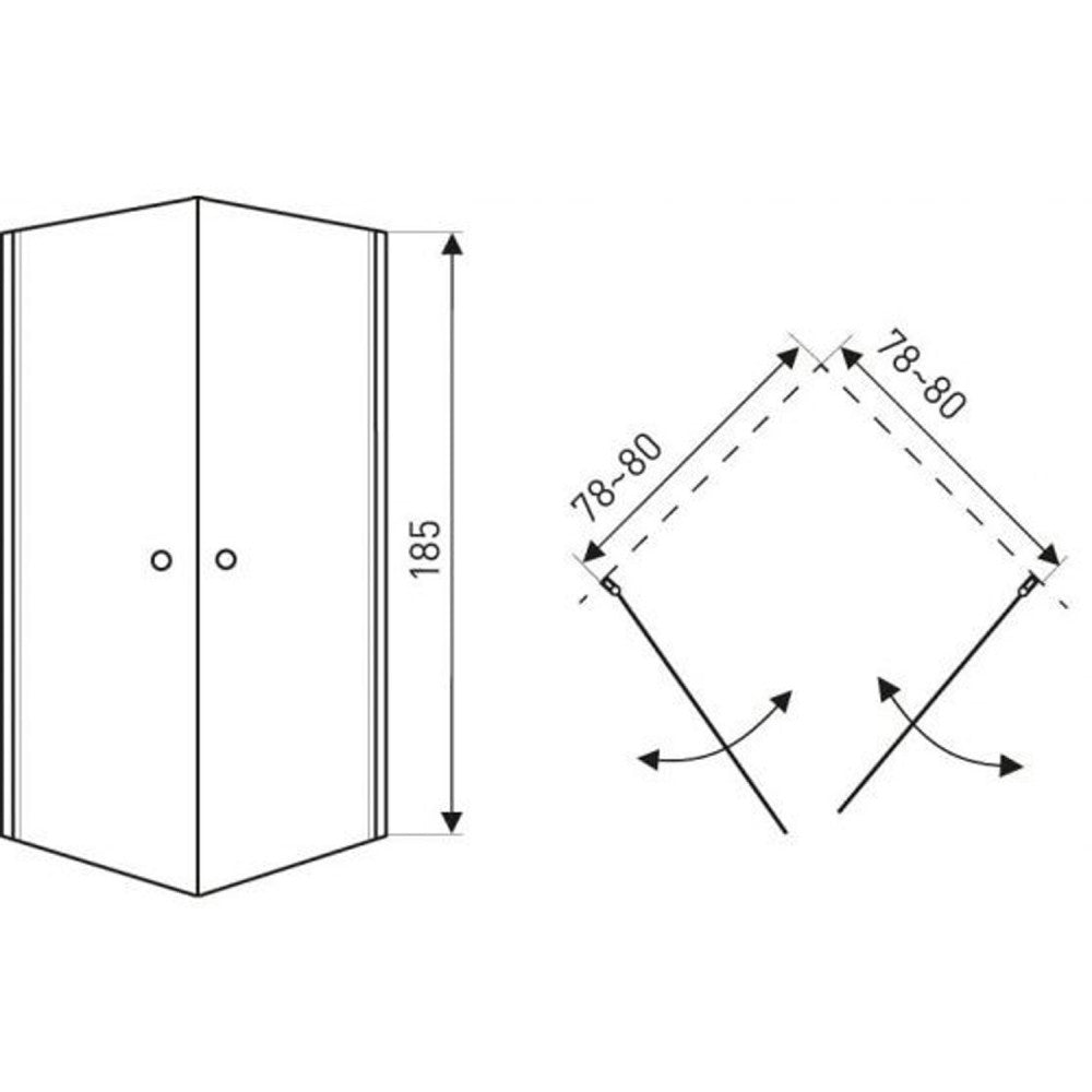 A zuhanykabin 5 mm-es edzett mintázott biztonsági üveggel van ellátva. A zuhanykabin szögletes kivitelben kapható. kétszárnyú, emelő mechanikás ajtóval van ellátva. A kabin 80 x 80 x 185 (200 tálcával) cm-es. Zuhanytálca mérete(opcionális): 80 x 80 x 15 cm / 80 x 80 x 15 cm (nem tartozék).