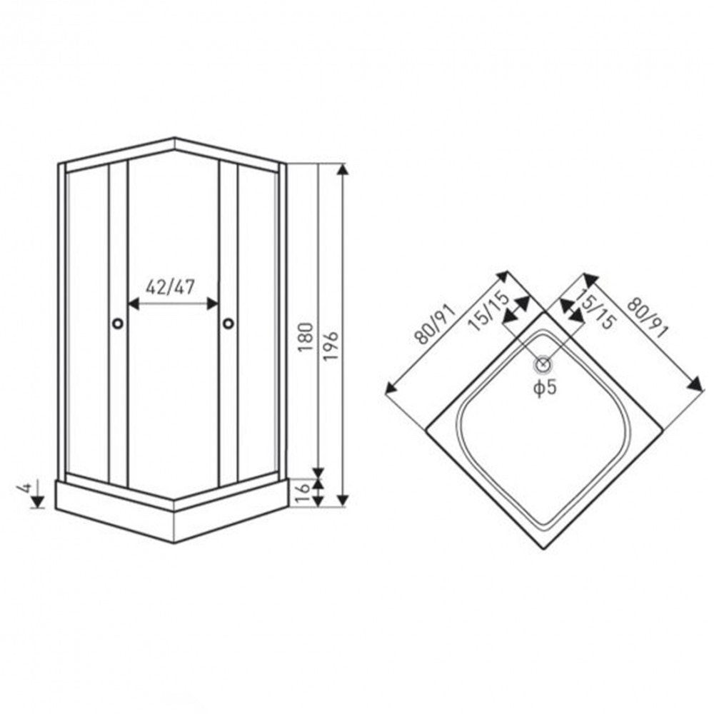 A zuhanykabin 4 mm-es edzett biztonsági üveggel van ellátva. A zuhanykabin szögletes kivitelben kapható. Dupla tolóajtóval van ellátva. A zuhanykabin 80x80x196 cm-es, a zuhanytálca 80x80x16 cm-es. Olga SQ Zuhanykabin zuhanytálcával kapható.