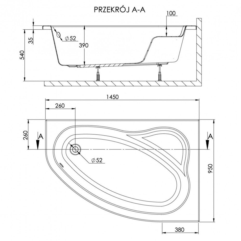 SIMPLA 95x145 aszimmetrikus kád jobb