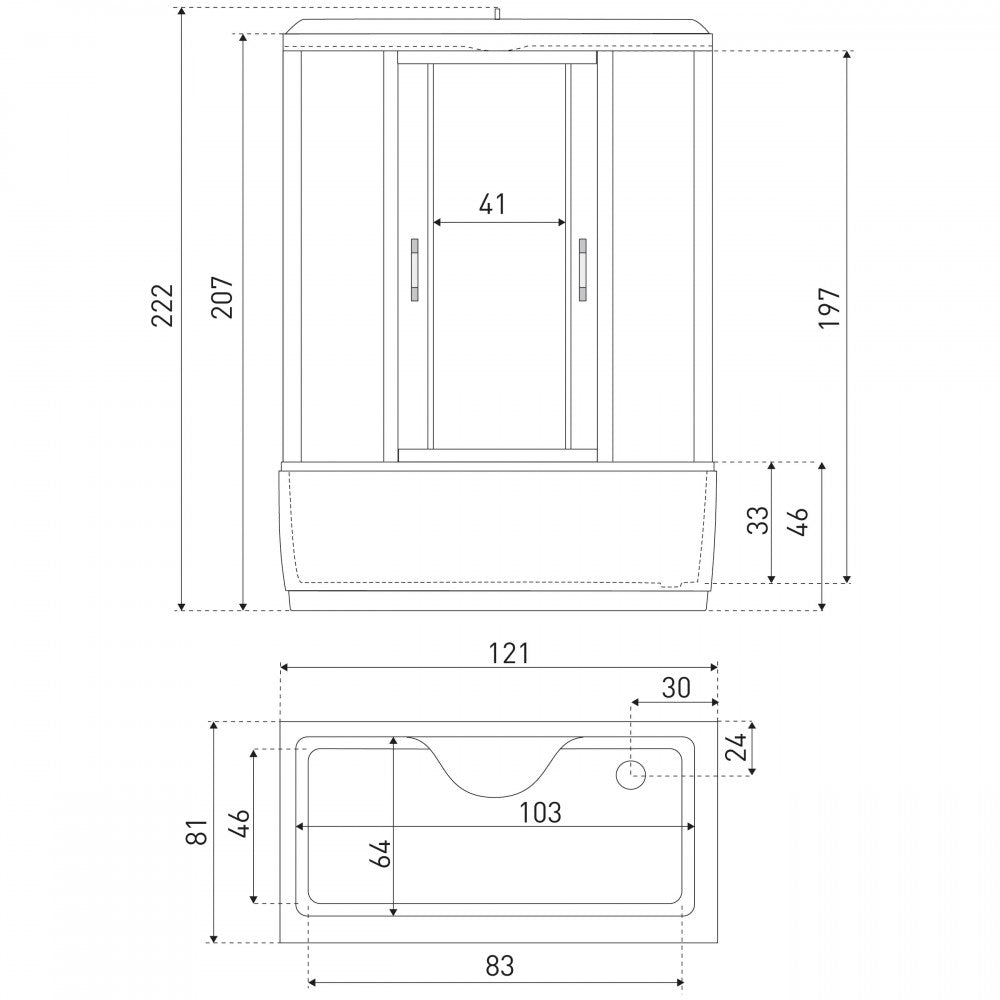 - Zuhanytálca méret: 121 x 81 x 46 cm