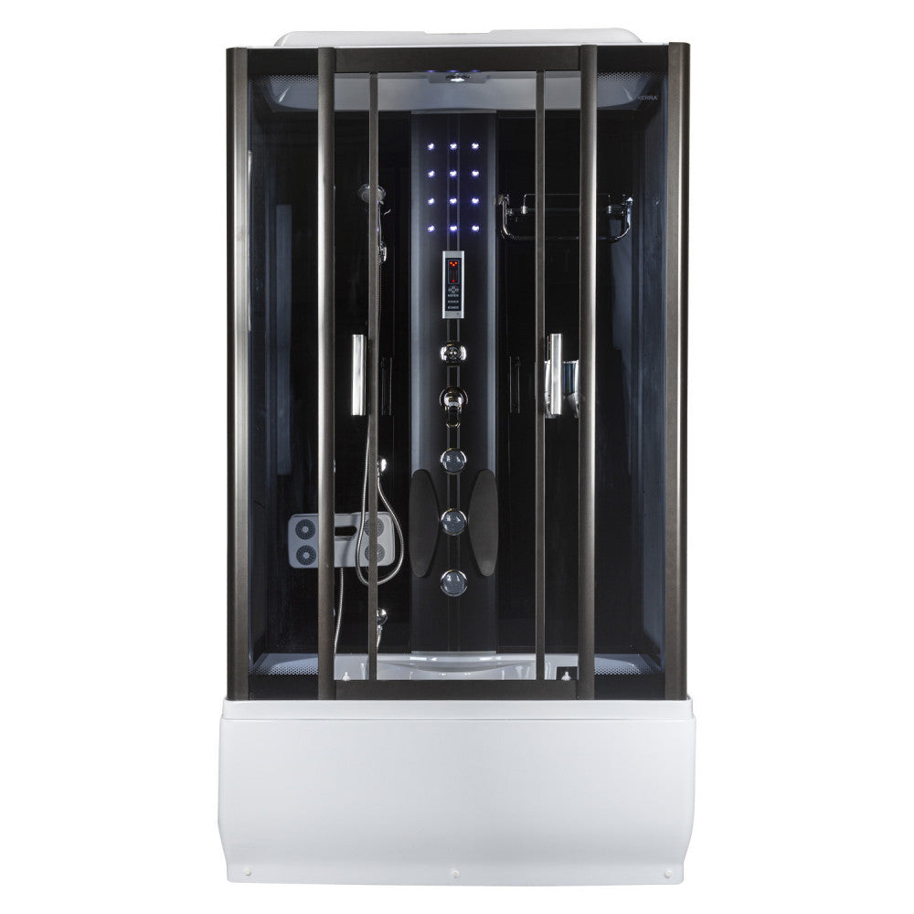 A Kerra XL 120 hidromasszázs kabinja rendkívül funkcionális és esztétikus. Könnyen tisztán is tarthatjuk. 3 duplaáramú hidromasszázs fúvókával van felszerelve. Ezen kívül a felszereléshez tartozik egy talpmasszírozó és egy rádió is, mely kellemesebbé teszi a pihentető fürdőzést. Az XL 120 kabin 5 mm vastag üveggel rendelkezik. Elöl és oldalt grafit, hátul fekete. Az XL 120 hidromasszázs kabinban található pancsoló csúszásgátló szerkezettel rendelkezik, melynek köszönhetően használata kényelmes és biztonságos.