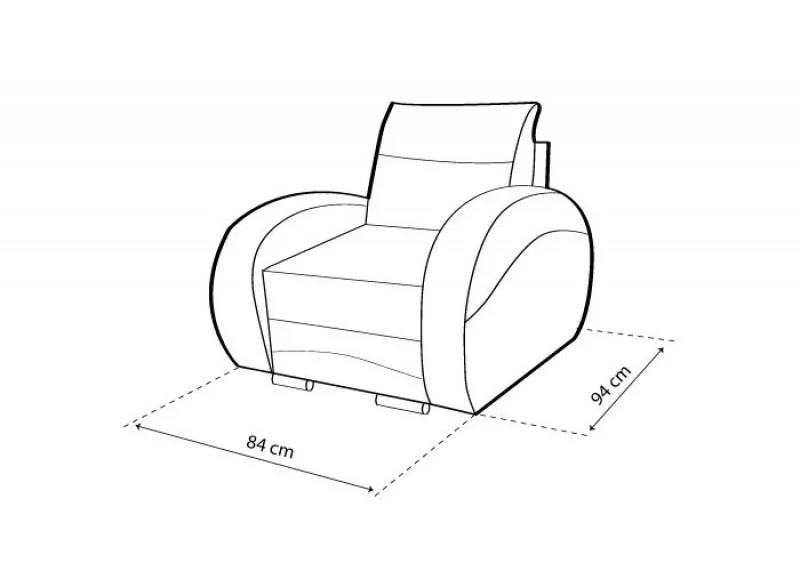 külső méret: 84 × 94 cm, ülőmagasság: 44 cm, beülőmélység (párnával): 55 cm, beülőmélység: 75 cm, háttámlamagasság: 74 cm