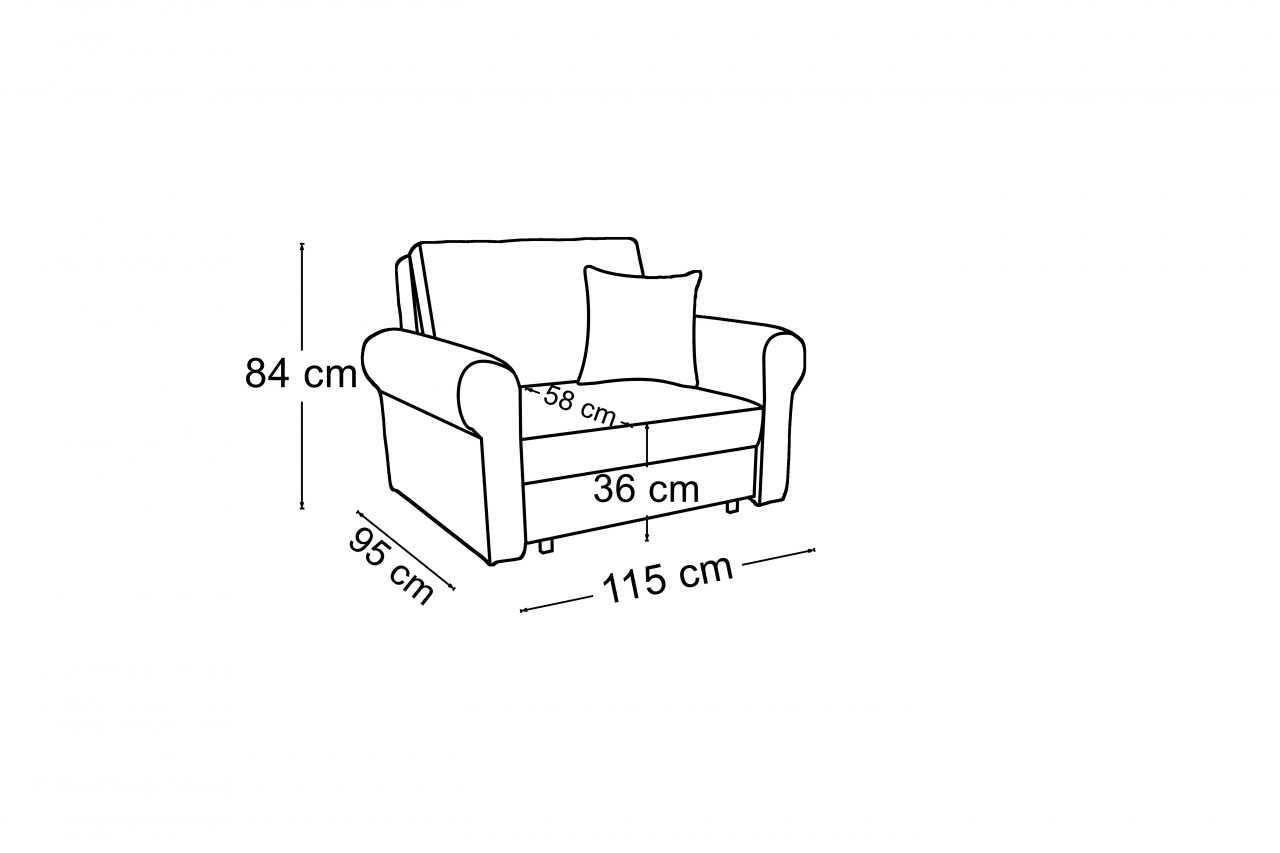 külső méret: 115 cm x 95 cm, fekvőfelület: 195 x 80 cm, ülőmagasság: 36 cm, beülőmélység: 58 cm, magasság: 84 cm