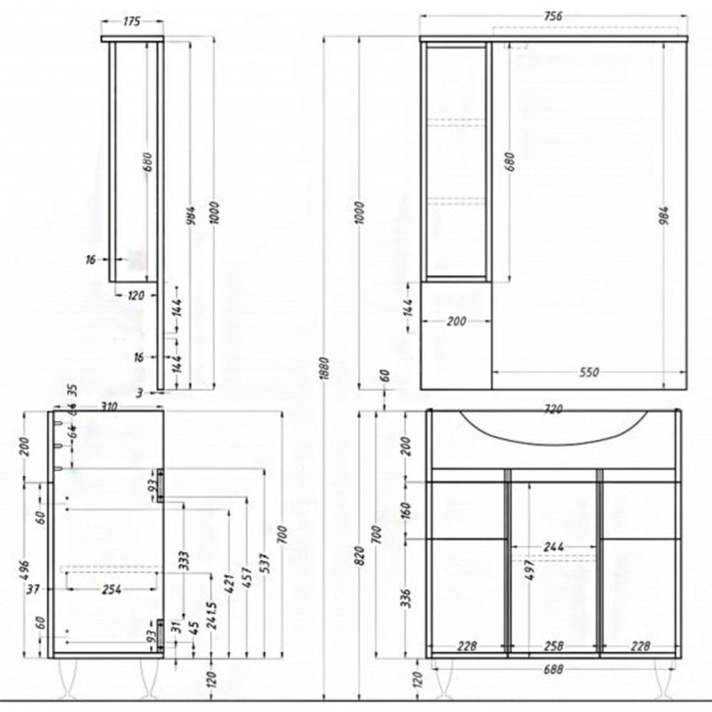 - Felső tükrös elem : 100x75,6x17,5 cm