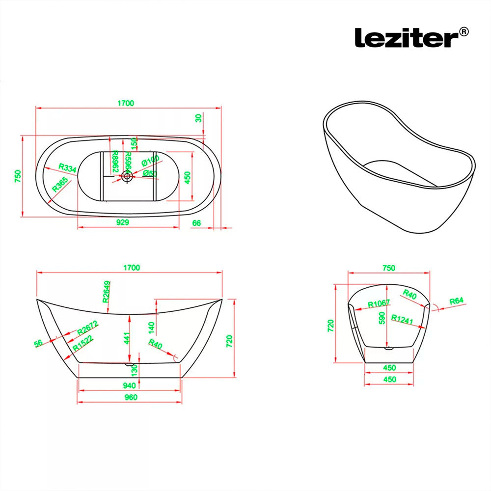 Flow szabadon álló fürdőkád 170x75x72 cm