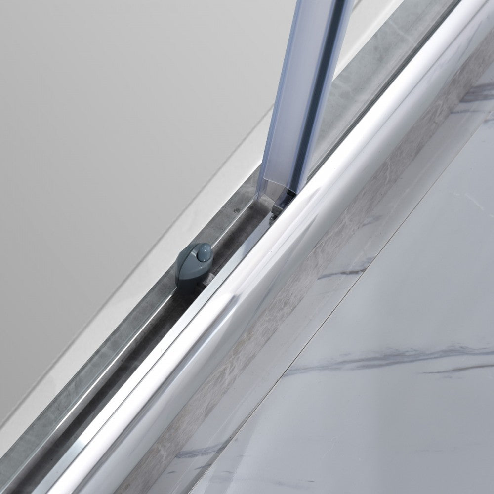 A termék állítható szélességű mindkét oldalon 15 mm-el. A zuhanyajtó krómozott alumínium profillal és duplagörgőkkel van ellátva. Univerzálisan szerelhető jobb vagy akár balos irányba is.
