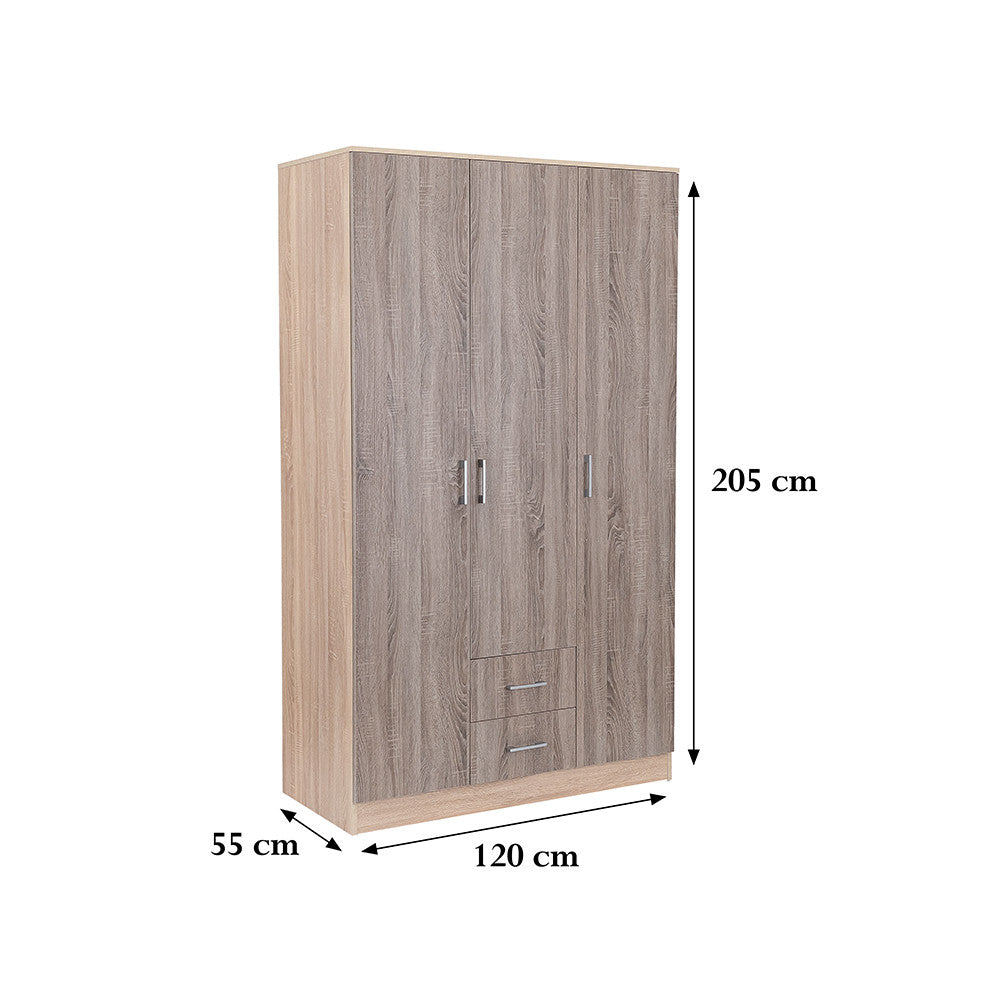 Az elegáns sonoma tölgy front és a fahatású yorki tölgy korpusz ötvözete tökéletes harmóniát teremt a nappaliba vagy a hálószobába egyaránt. A 205 cm magas, 120 cm széles és 55 cm mély gardróbszekrény ideális választás mindenki számára, aki szeretné rendszerezni ruháit és kiegészítőit.