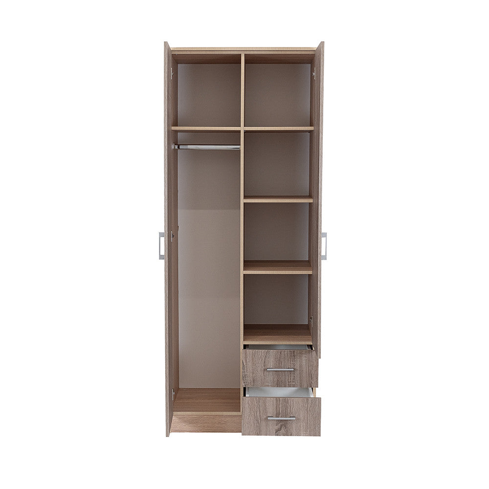 Az elegáns yorki tölgy front és a fahatású sonoma tölgy korpusz ötvözete tökéletes harmóniát teremt a nappaliba vagy a hálószobába egyaránt. A 205 cm magas, 80 cm széles és 55 cm mély gardróbszekrény ideális választás mindenki számára, aki szeretné rendszerezni ruháit és kiegészítőit.