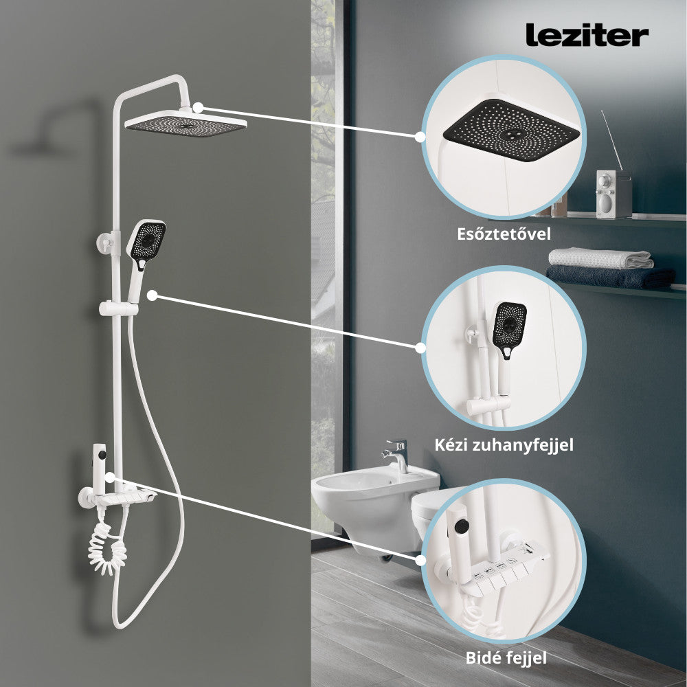 Eliz multifunkciós modern kialakításával és sokoldalú funkcióival tökéletes választás a luxus és kényelem szerelmeseinek. Ez a zuhanyszett nemcsak esztétikailag kifogástalan, de műszaki szempontból is a legmagasabb minőséget képviseli.
