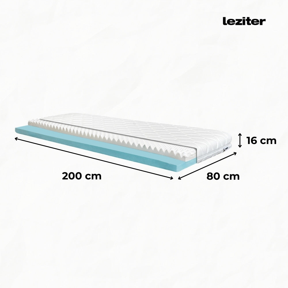 - Tartósság és hosszú élettartam: A matrac magas minőségű anyagokból készült, különösen a 25 + 25 kg/m³ sűrűségű poliéter habszivacs mag, amely hosszú éveken át megőrzi formáját és funkcionalitását. Nem kell aggódnod a besüppedés vagy a deformáció miatt, így hosszú távon is biztosítja a megfelelő alvási környezetet.