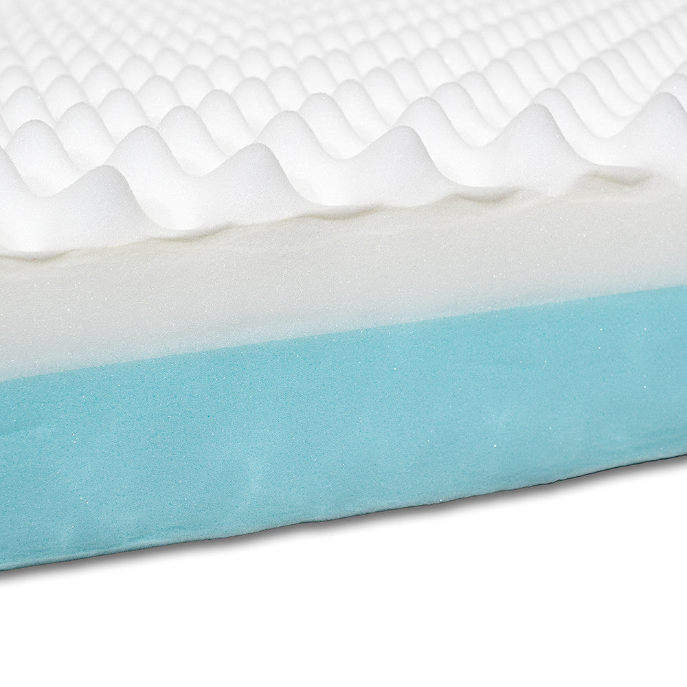 A DreamX matrac belső szerkezete két különböző szivacsrétegből áll, hogy maximális kényelmet és támogatást biztosítson. A 6 cm vastag hullámos habszivacs réteg lágy kényelmet nyújt, miközben a további 6,5 cm vastag támogató habszivacs réteg gondoskodik a megfelelő alátámasztásról. A matrac felülete tojásrekeszhez hasonló mintázatú, amely segíti a nyomáselosztást és a szellőzést, ezzel fokozva a komfortérzetet és a matrac légáteresztő képességét. Ez a kombináció segít csökkenteni a nyomáspontokat és elősegíti a megfelelő gerinctartást alvás közben.