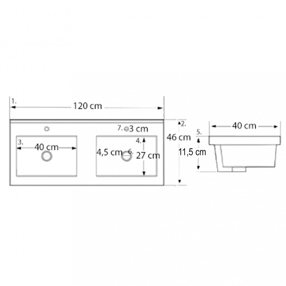 A csomag részét képzi egy méretben passzoló kerámia mosdó is, így ezt nemkell külön beszereznie. A mosdó elkészítésekor kiváló minőségű kerámiát alkalmaztak, ezzel garantálva az időtállóságot. A mélymedencékkel ellátott dupla medencés mosdóban két csaptelepnek van kialakított hely. Ebből adódóan nagyobb családok számára is ideális választás hiszen így nem kell sorban állni egy-egy kézmosás alkalmakor.