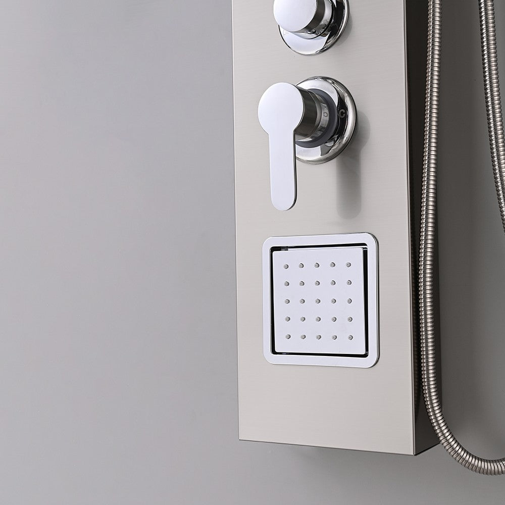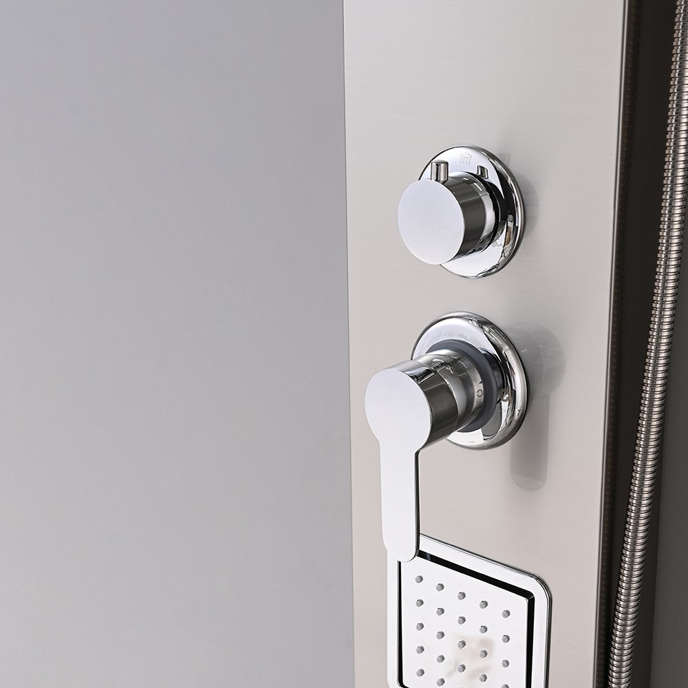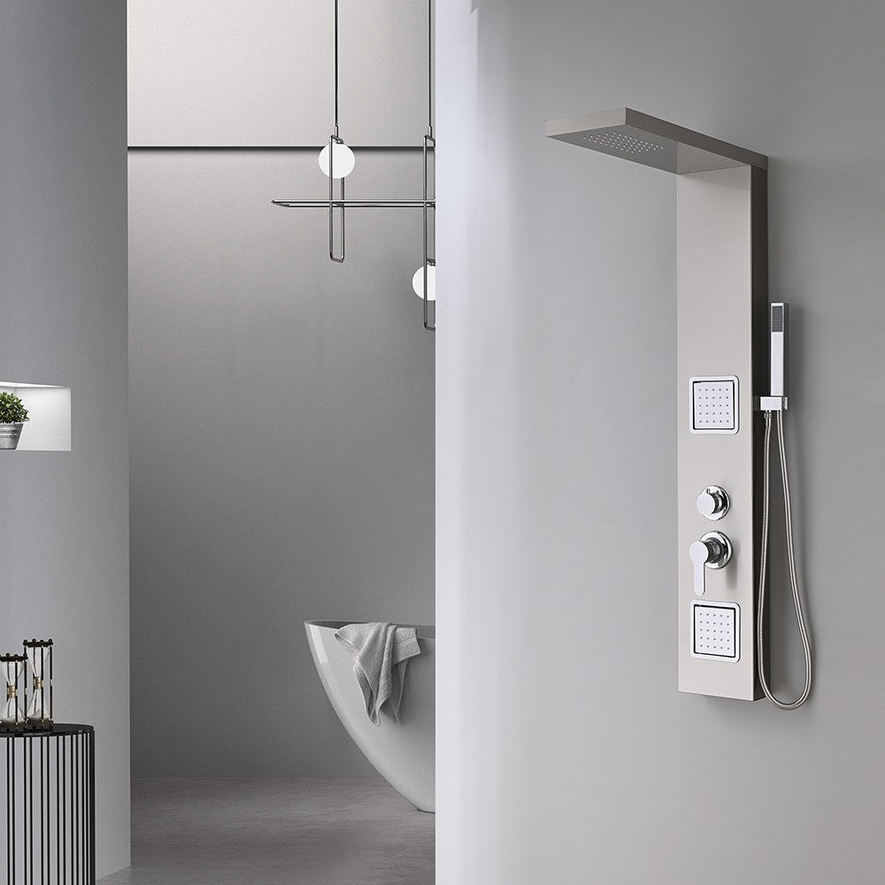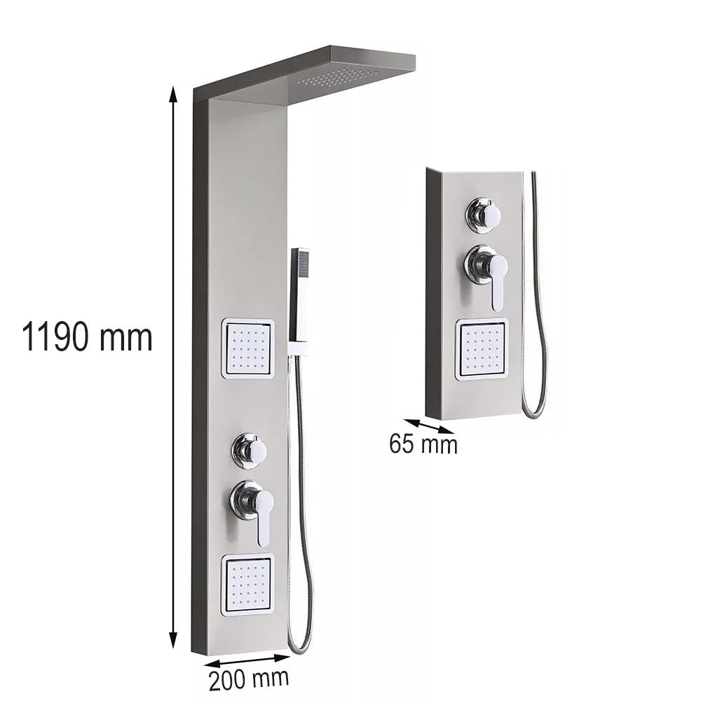 A Merino hidromasszázs zuhanypanel egy kiváló minőségű, modern és stílusos zuhanypanelegyüttes, amelyet az élménydús fürdőzés és zuhanyozás szerelmeseinek terveztek. A panel mérete 119x20x6,5 cm, ami ideális méretet biztosít a fürdőszobák számára, akár a nagyobb, akár a kisebb terekhez. Ez a zuhanypanel 0,8 mm vastagságú szálcsiszolt rozsdamentes acélból készült, ami nemcsak kiemelkedően tartós, de elegáns megjelenést is kölcsönöz a fürdőszobának. A szálcsiszolt felület finom és esztétikus, tovább fokozva a zuhanypanel vonzó megjelenését. A rozsdamentes acél anyagból készült zuhanypanel ellenáll a rozsda, a vízkő és a korroziónak, így hosszú élettartammal rendelkezik, és könnyen tisztán tartható.