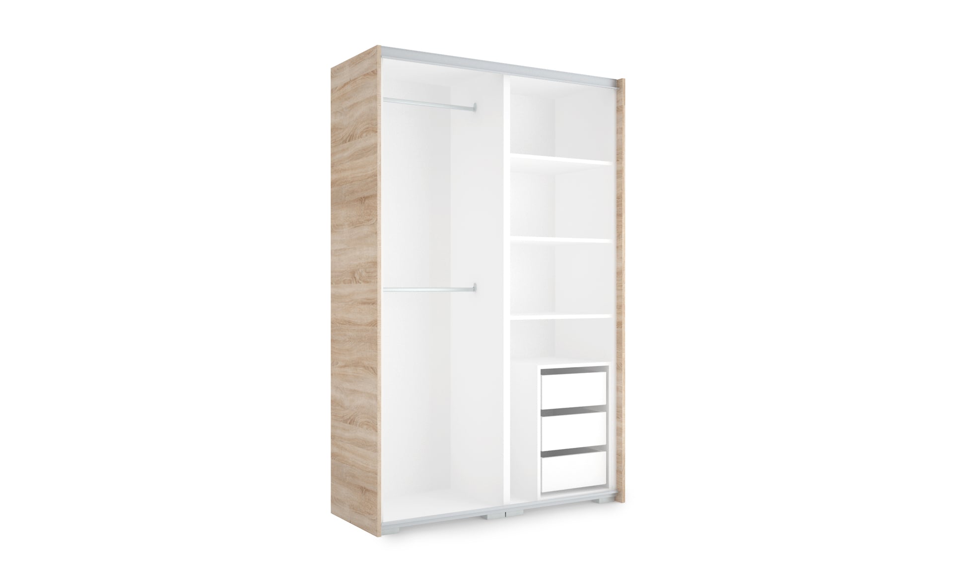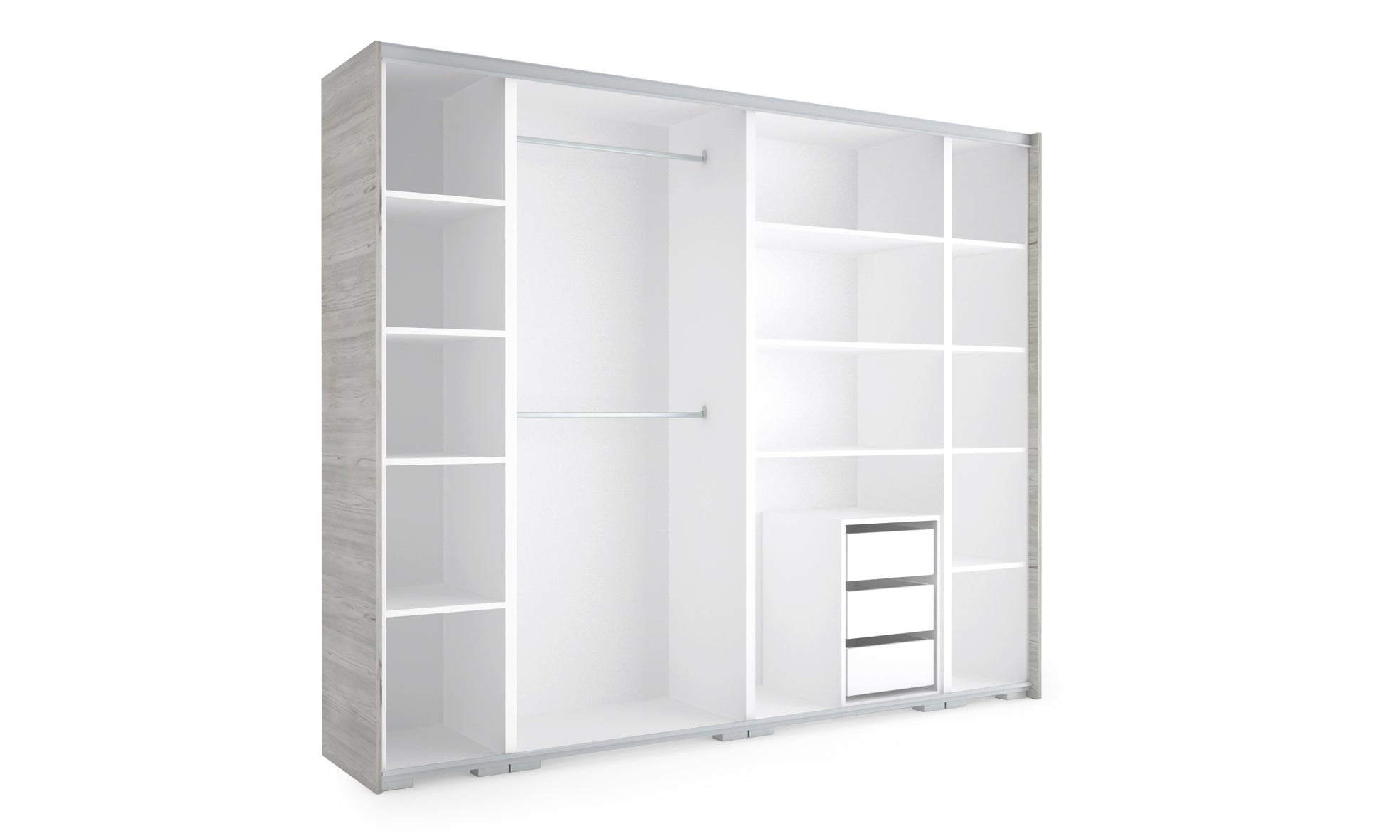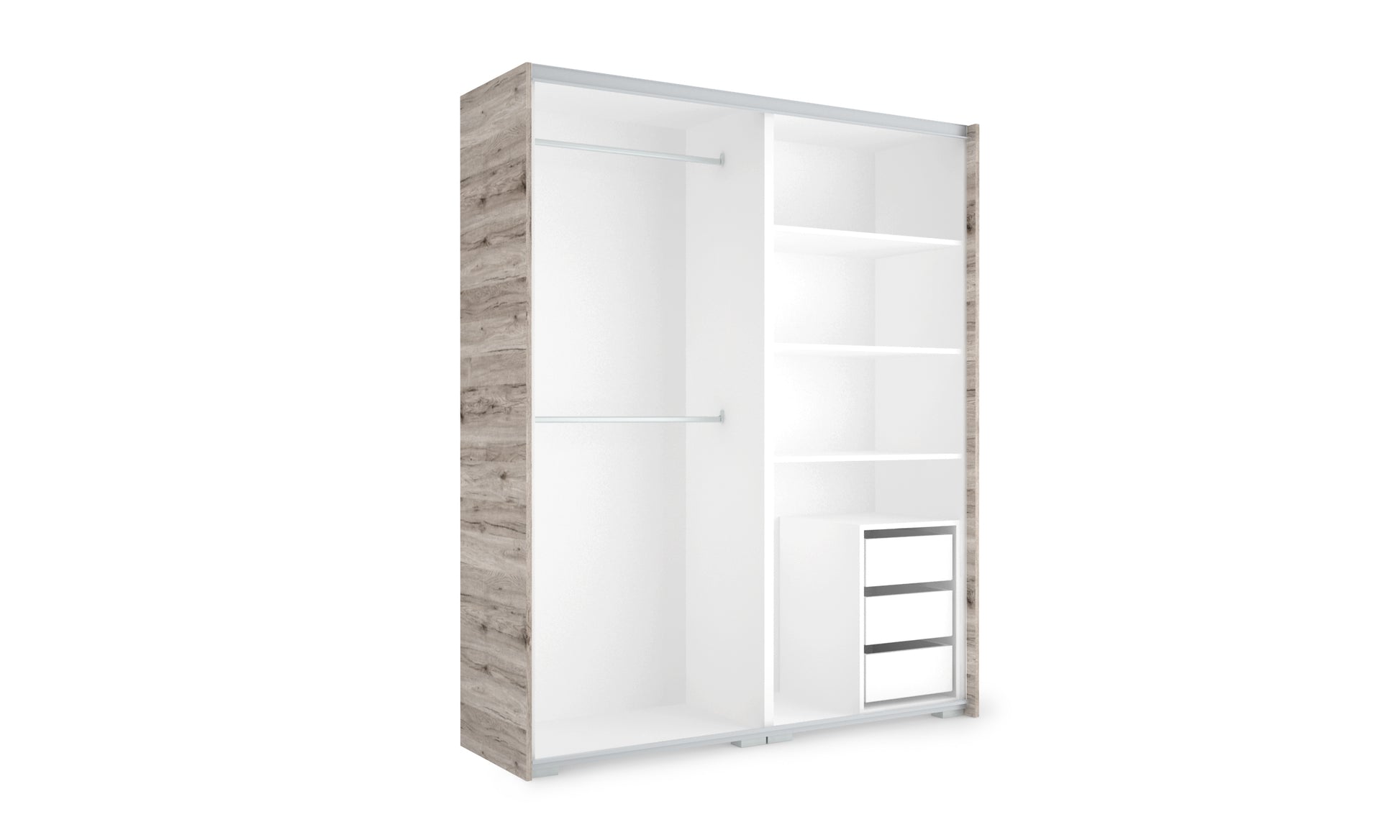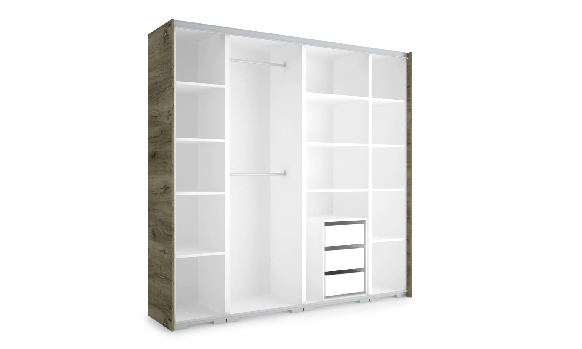 Elegáns külső, praktikus belső elrendezés jellemzi. A 2 ajtó 8 panelből áll. Az oldalfal és a panelek is 11-féle színben kérhetőek, így a legkülönfélébb színvariációk állíthatóak össze. Gardróbunk rendelhető egy színben, soronként vagy akár sakktábla minta szerint változó színű ajtóval. Az ajtó kérhető tükörrel is! Még a profil színét is kiválaszthatjuk, lehetőség van szürke vagy fekete profillal kérni a terméket. A 210 cm-es magasságnak és a 7-féle szélességnek köszönhetően remek választás a kisebb szobával rendelkezőknek és a nagy tárolóhelyre vágyók számára egyaránt.