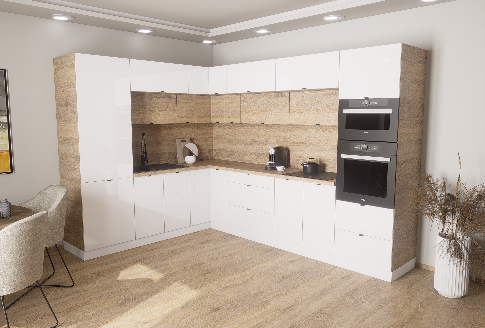Milánó 230x310cm konyhablokk ( munkalappal ) 215cm magas mélyített felső sorral