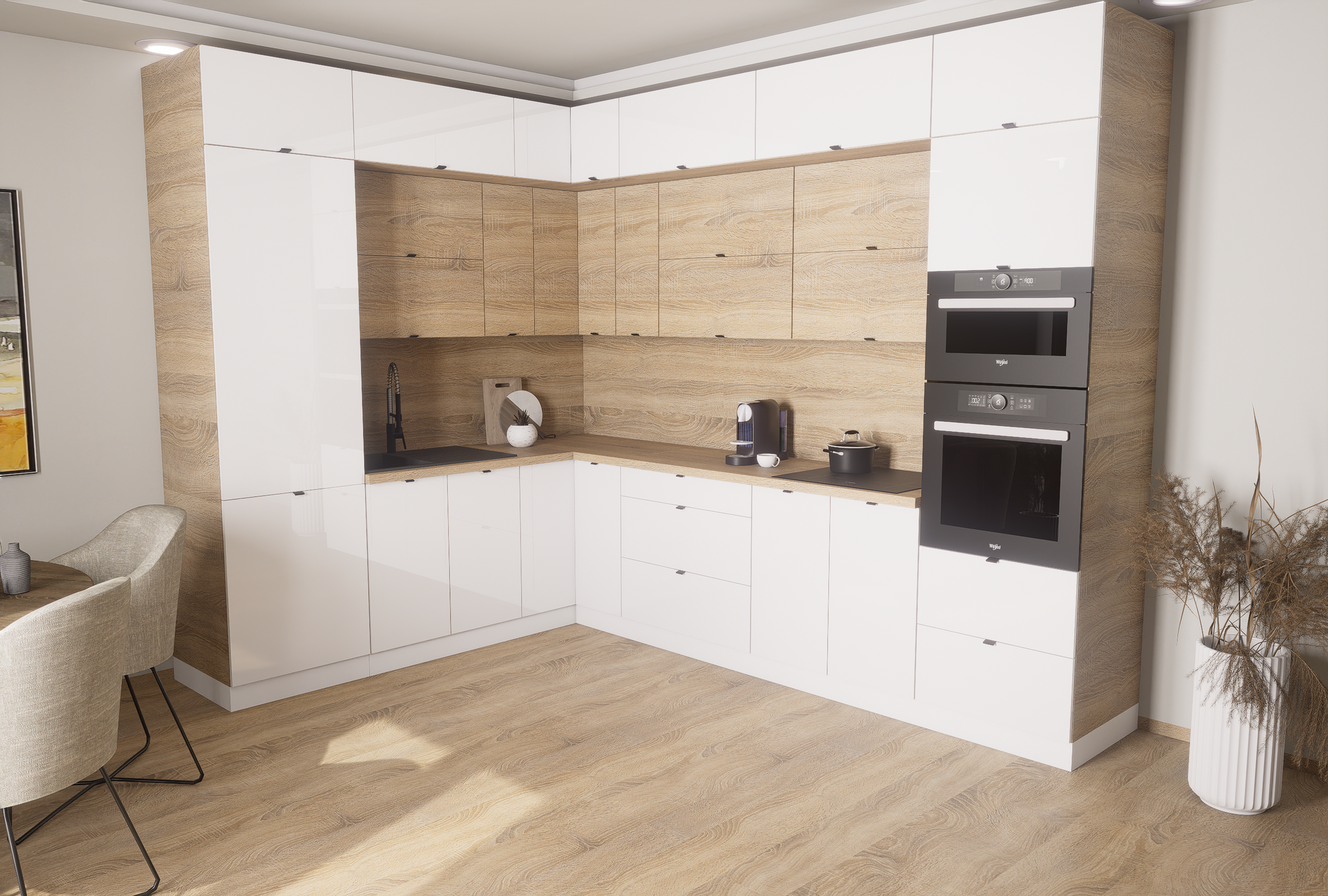 Milánó 230x310cm konyhablokk ( munkalappal ) 251cm magas mélyített felső sorral