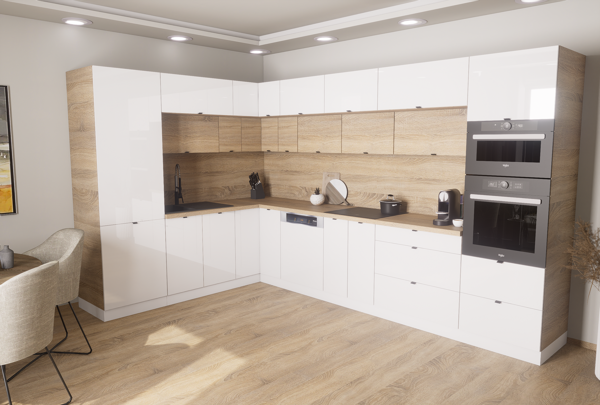 Milánó 230x350cm konyhablokk ( munkalappal ) 215cm magas mélyített felső sorral