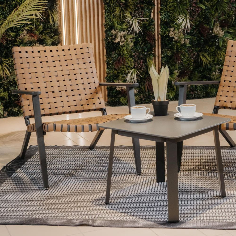 Akár egy kis kertben vagy egy kis teraszon is elfér. Ideális ajánlat azoknak, akik funkcionális helyet szeretnének kialakítani egy kávé vagy desszert mellett. A készletet egyedi kialakítás, modern vidéki stílus jellemzi. A meleg árnyalatú barna szín még hangulatosabbá teszi a pihenés helyét. Az optimálisan kialakított ülések maximális kényelmet biztosítanak a pihenéshez. A bútorok sok évszakon át kitartanak, és kedvenc helyei lesznek a szabadban való pihenéshez.