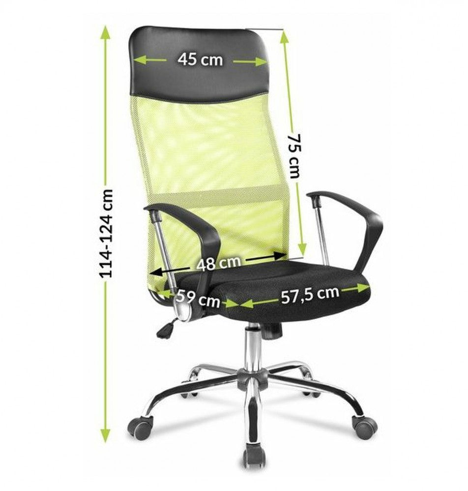 Az asztali szék széles talppal rendelkezik, amely biztosítja a stabilitást a használat során.A zöld forgószék nejlon kerekekkel van felszerelve, amelyek megvédik a padlót a karcolódástól. Az irodai szék TILT funkcióval rendelkezik, azaz blokkolja a függőleges helyzetet és egy billenős mechanizmust.