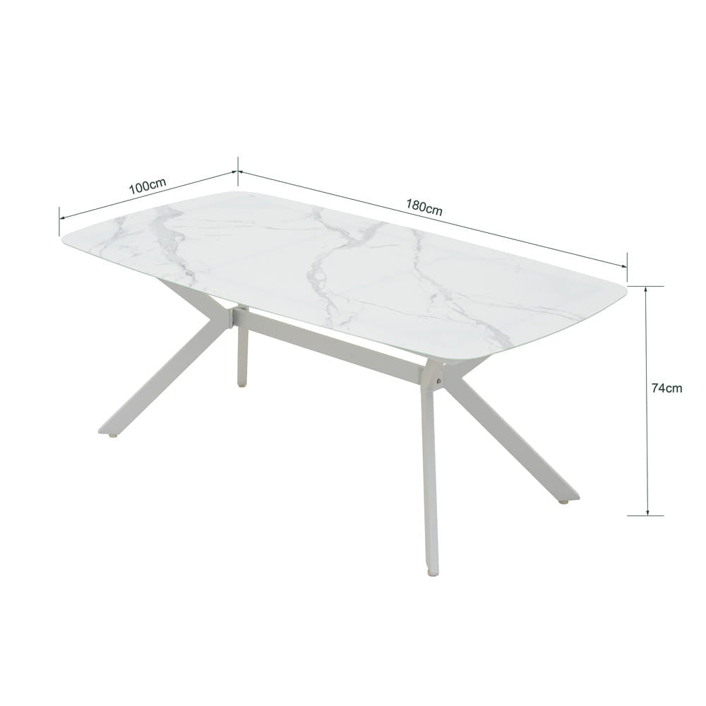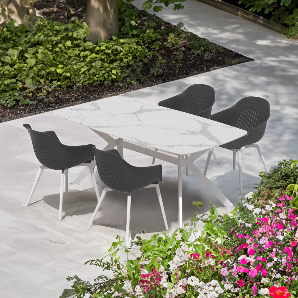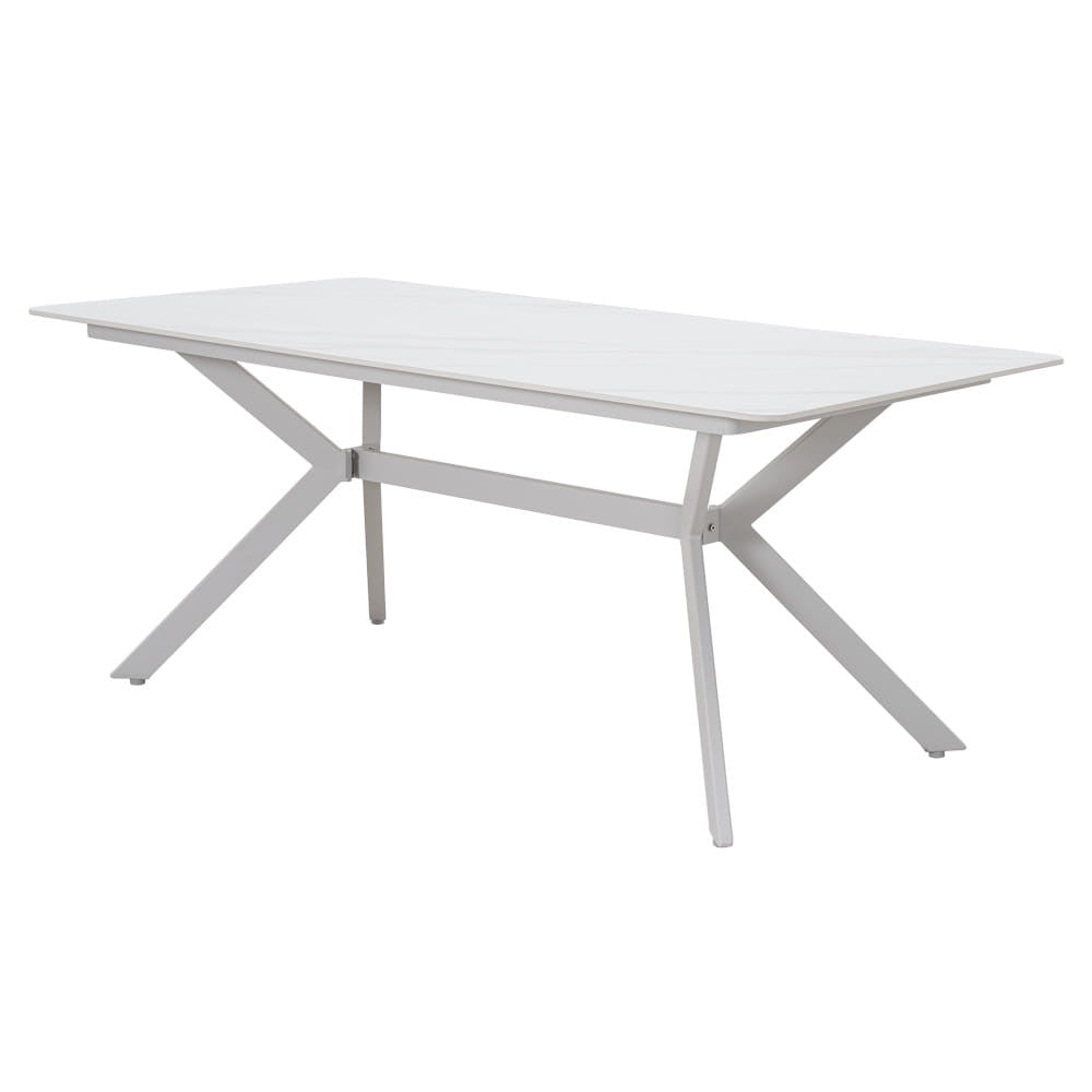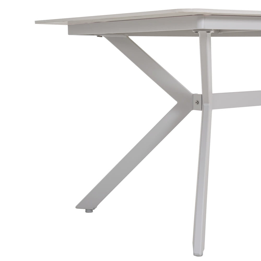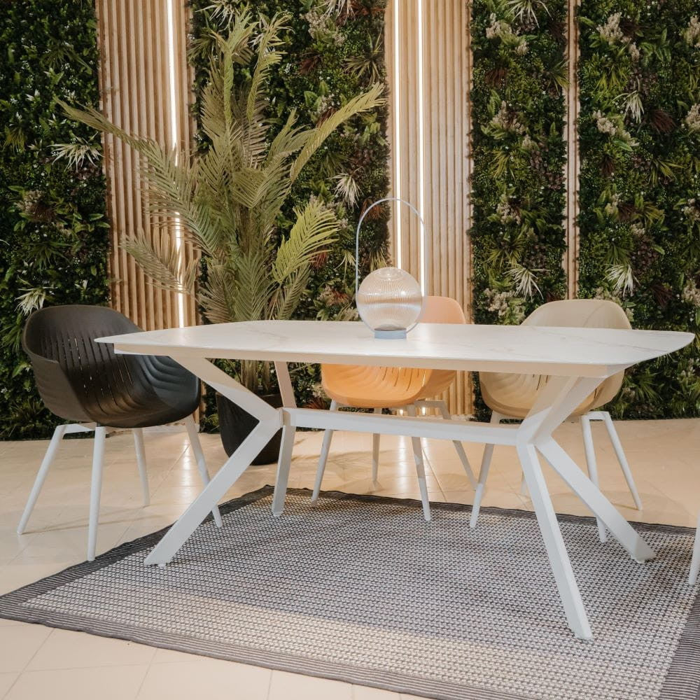 A porszórt alumíniumból készült váz nem csak a tartósságot, hanem az eleganciát is garantálja, amely könnyedén illeszkedik a legkülönfélébb kert- és terasz stílusokba. Korrózióállóságának köszönhetően a kerti asztal élettartama hosszabb ideig tart. A fehér márvány színű üveglap könnyed és modern karaktert kölcsönöz neki, tökéletes helyet teremtve a szabadban való pihenéshez.