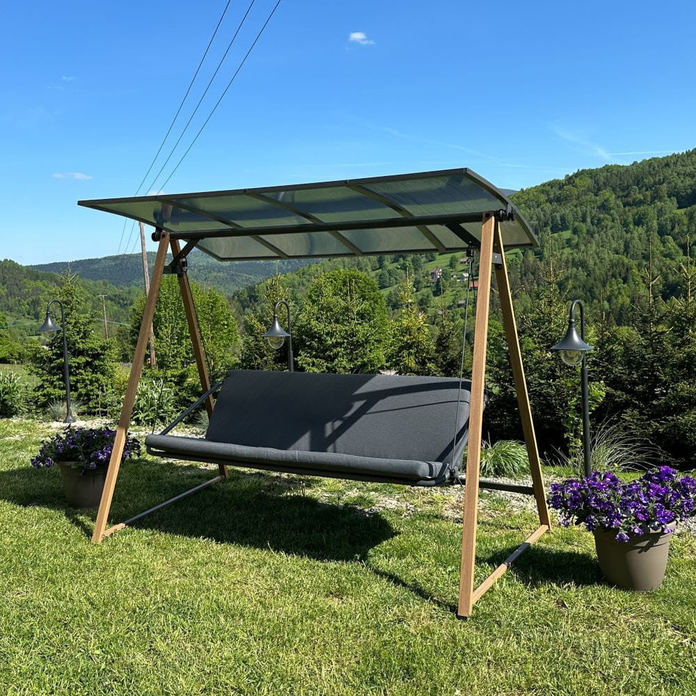 - Elegáns kialakítású 3 személyes kerti hinta, amely tökéletes egy divatos kertbe vagy teraszra