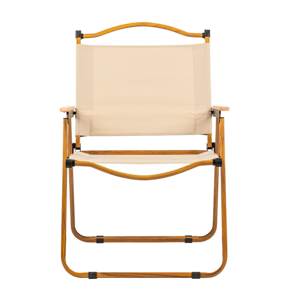A kényelmes kempingszék a funkcionalitást és az eleganciát ötvözi. A magasabb háttámlával ellátott szék a szabadban való pihenés kényelmét szolgálja. A váz acélból készült fahatású festéssel, amely garantálja a szerkezet megbízhatóságát és szilárdságát. A fa karfák további varázst adnak, miközben hangsúlyozzák a tartósságot.