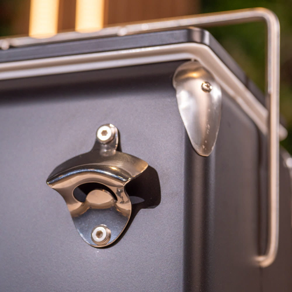 A termék masszív rozsdamentes acél fogantyúval van felszerelve. Ez nem csak megkönnyíti a szállítást, hanem egy zárral is rendelkezik, amely megvédi a váratlan kinyitástól. Ezenkívül praktikus sörnyitó található az oldalán, így az italok hűtésére és felszolgálására is alkalmas. A fehér műanyagból készült, 13 literes belső tartály lehetővé teszi a hűtött termékek biztonságos tárolását. A hűtőláda maximális terhelhetősége 15 kg, így ideális friss harapnivalók és italok tárolására.