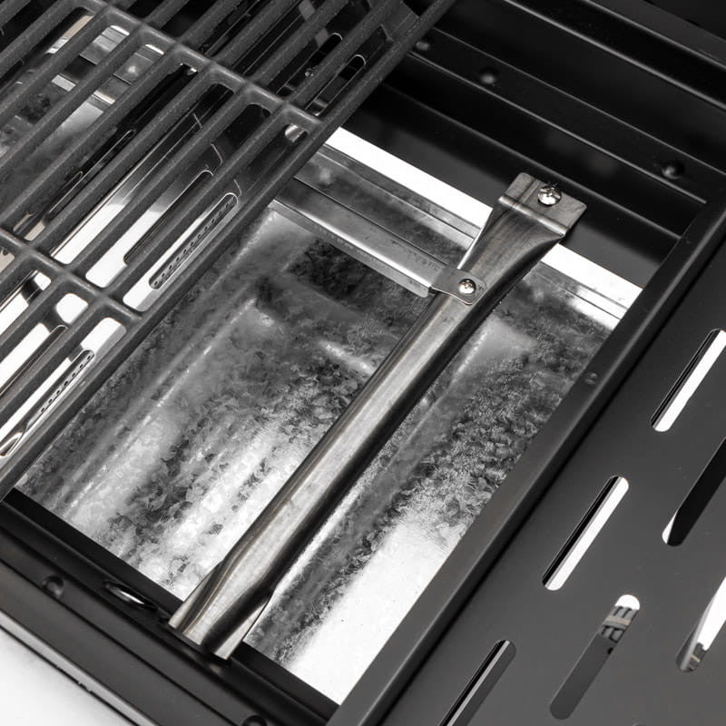 - Az összecsukható oldalsó polcok ideális helyet biztosítanak a grillezéshez szükséges praktikus kiegészítők tárolására