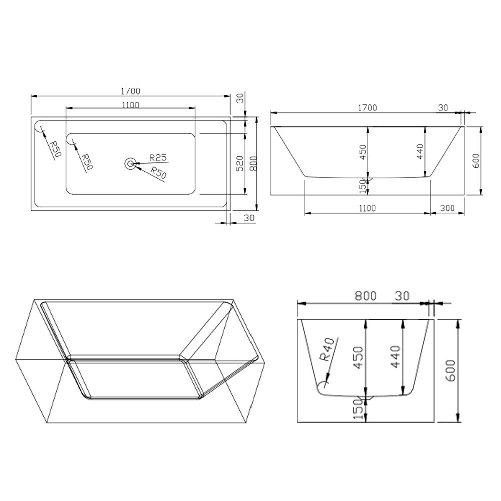 Nara szabadon álló fürdőkád 170x80x60 cm