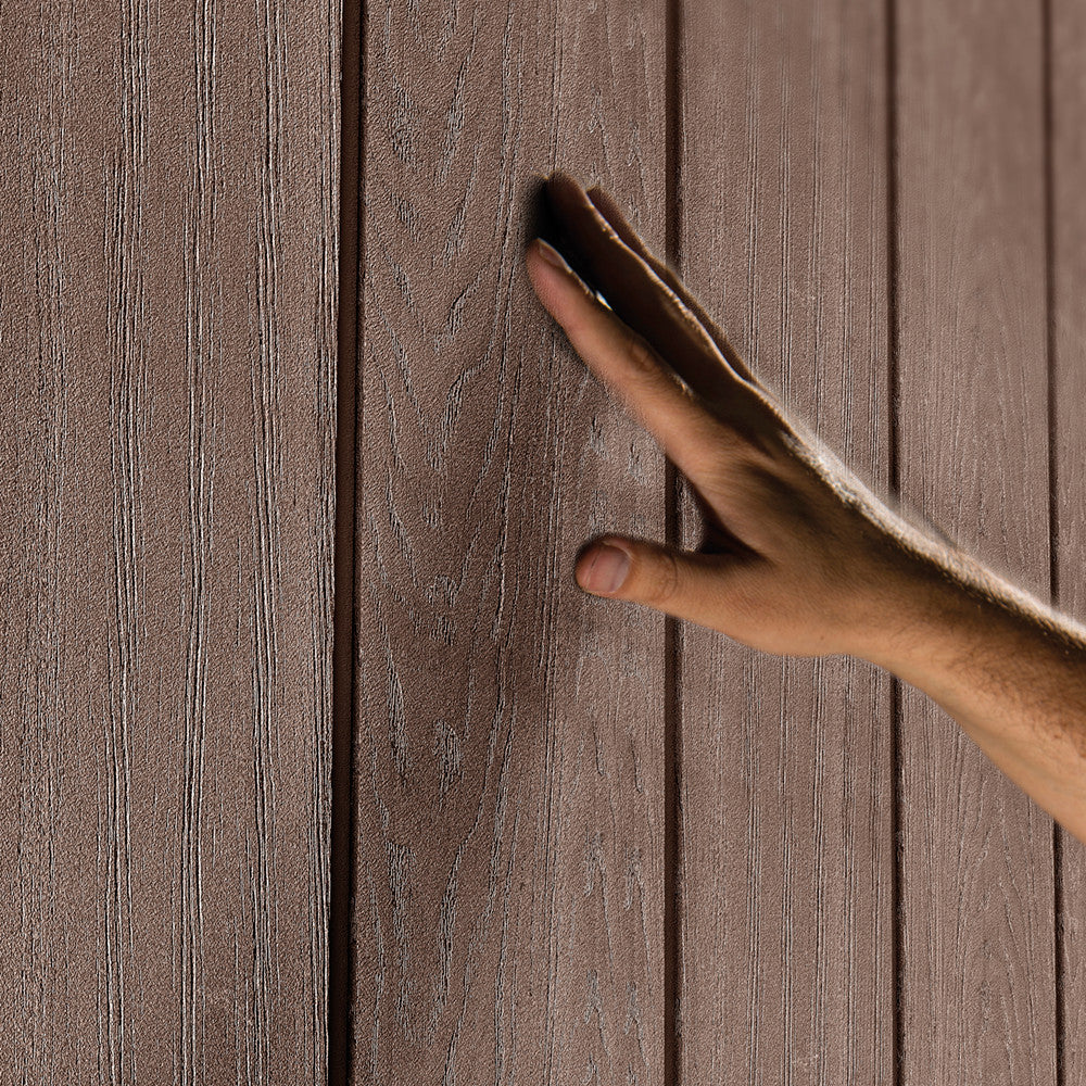 A Newton Plus kerti ház nemcsak praktikus, hanem esztétikus is. A barna színű EvoTech anyag valósághű fa textúrát biztosít, anélkül hogy a fa gondozási igényeivel kellene számolni.