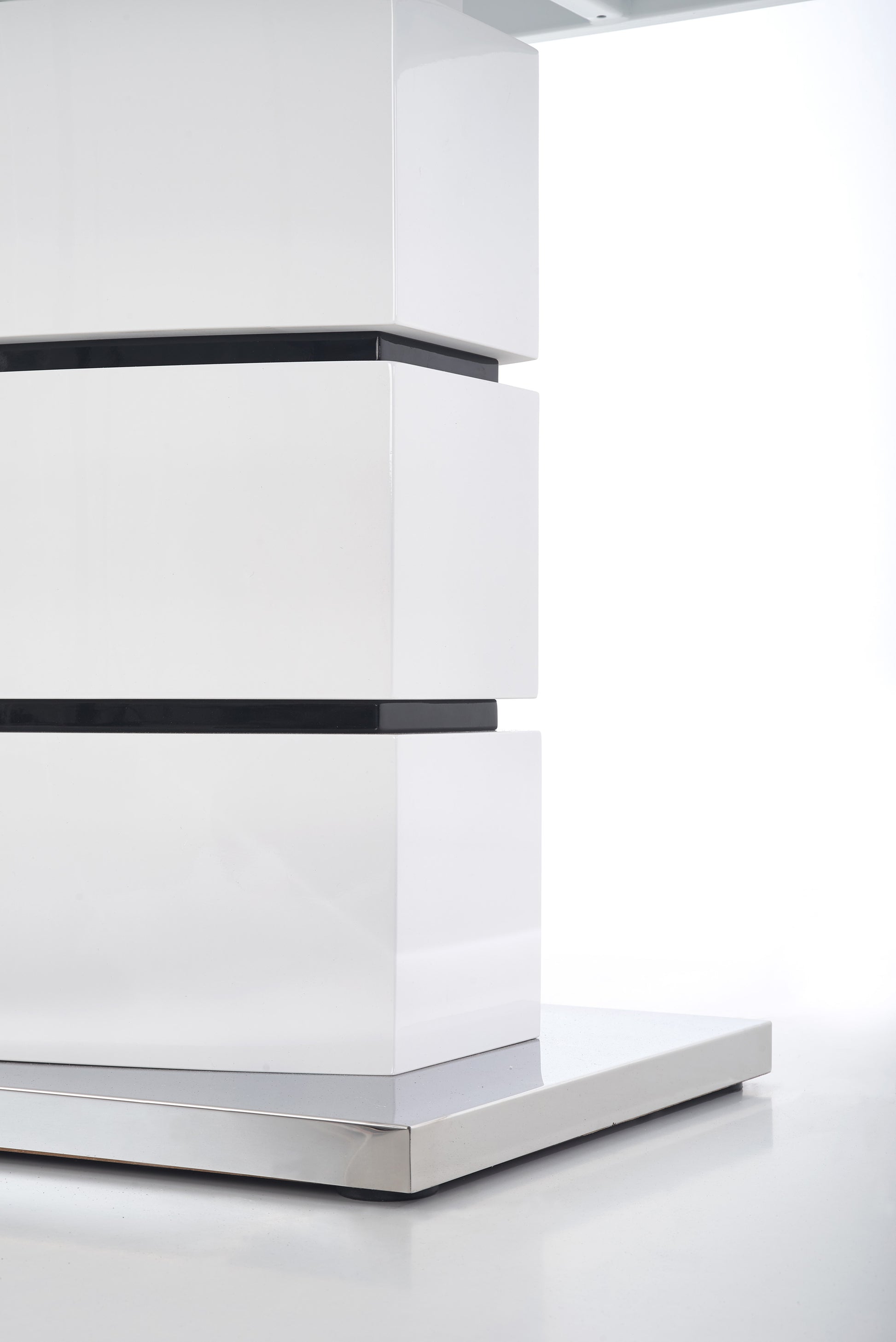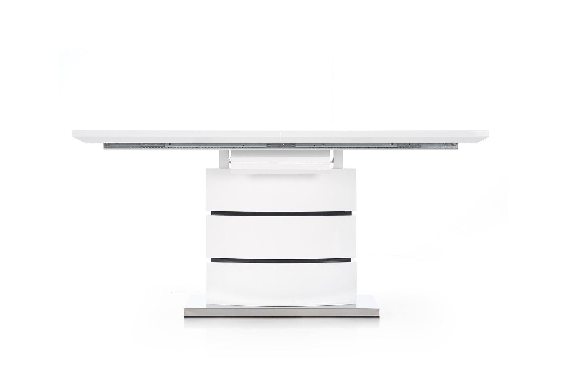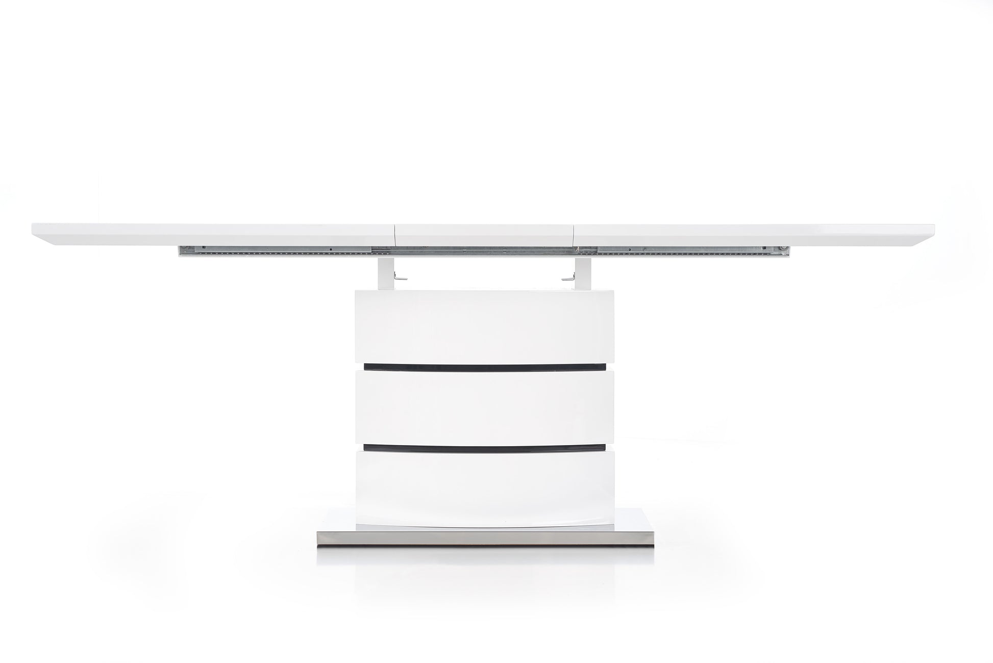 bővítőasztal, méretek: 160÷200/90/75 cm, anyaga: lakkozott MDF / rozsdamentes acél, szín: fehér fekete csíkokkal