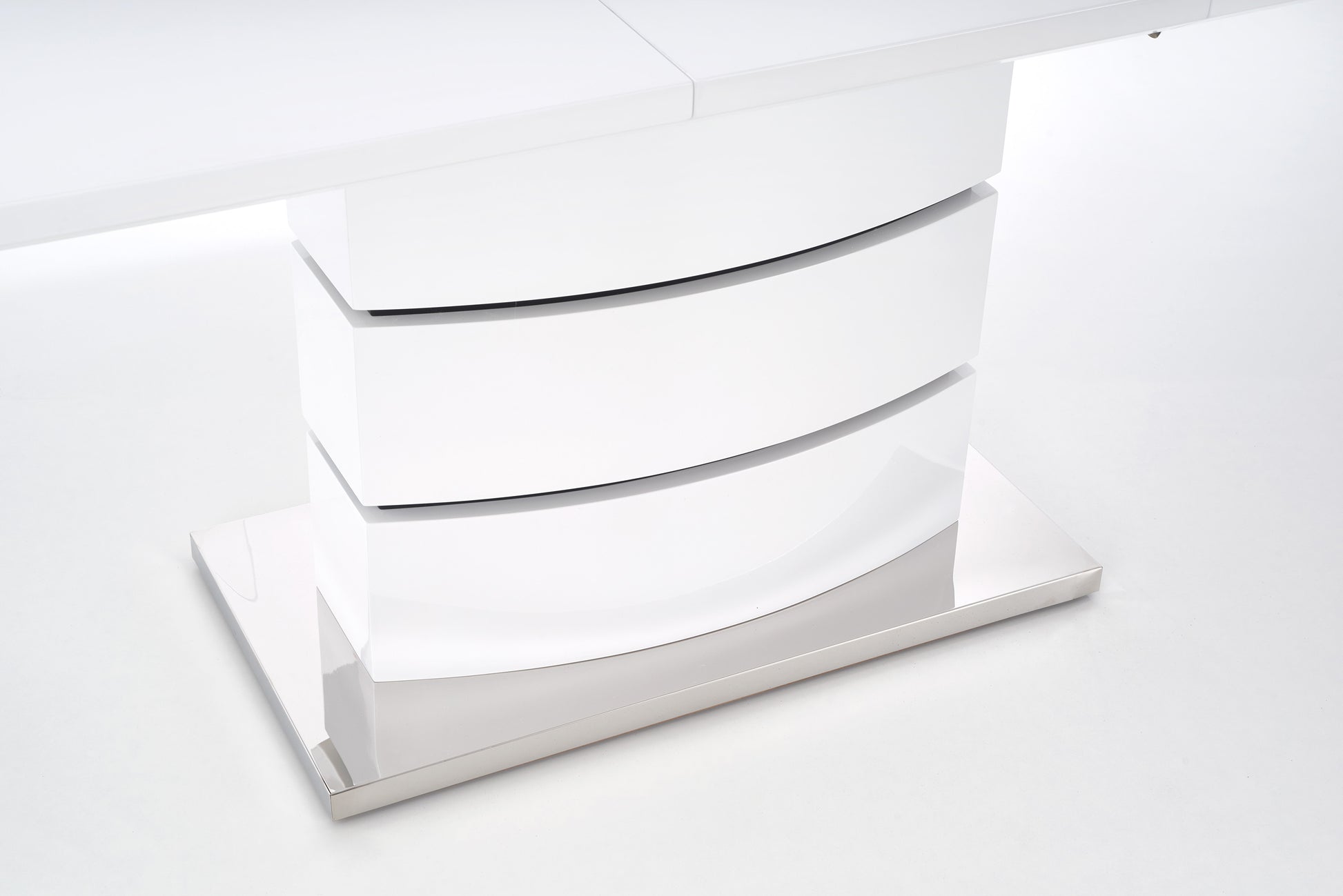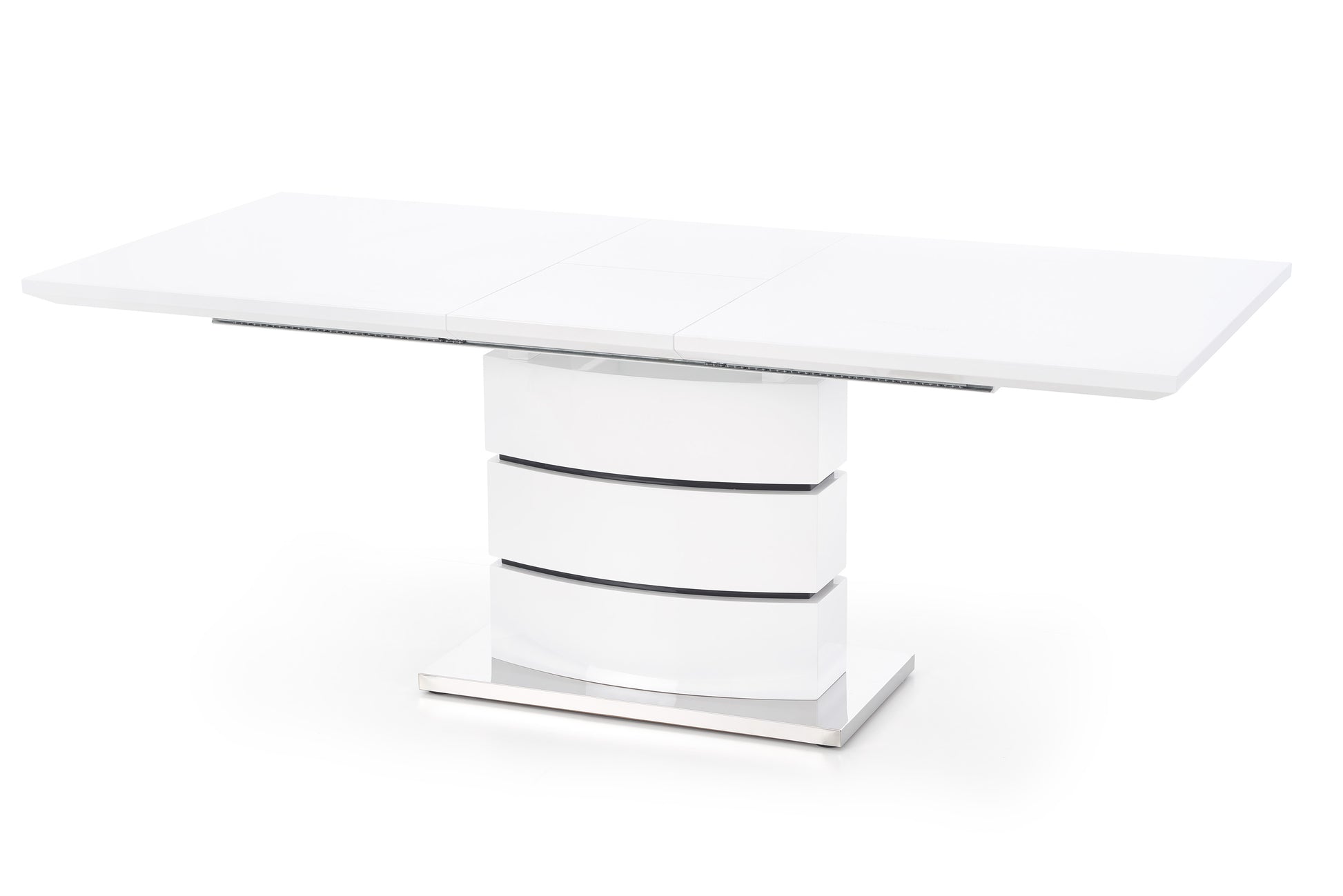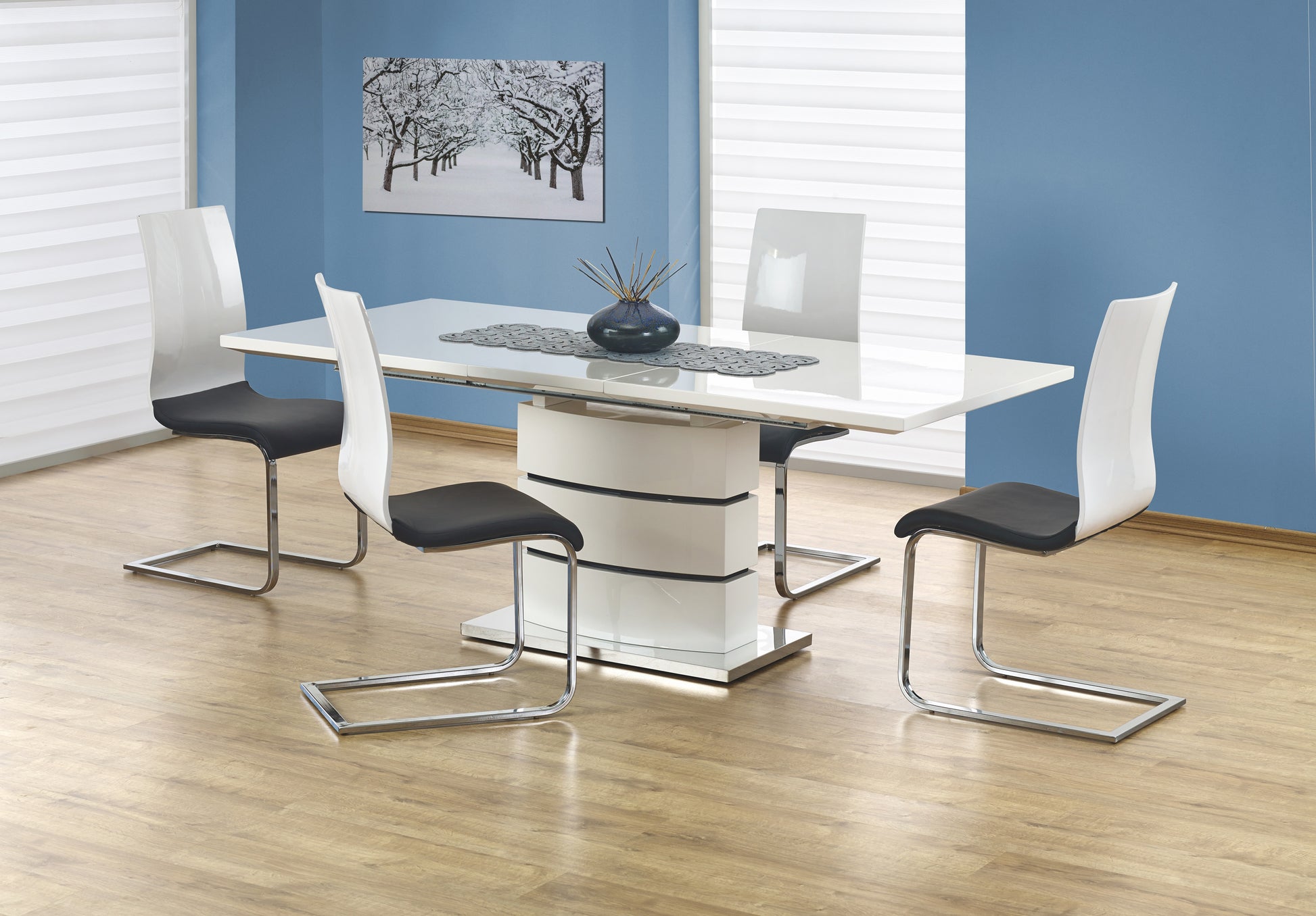 bővítőasztal, méretek: 160÷200/90/75 cm, anyaga: lakkozott MDF / rozsdamentes acél, szín: fehér fekete csíkokkal