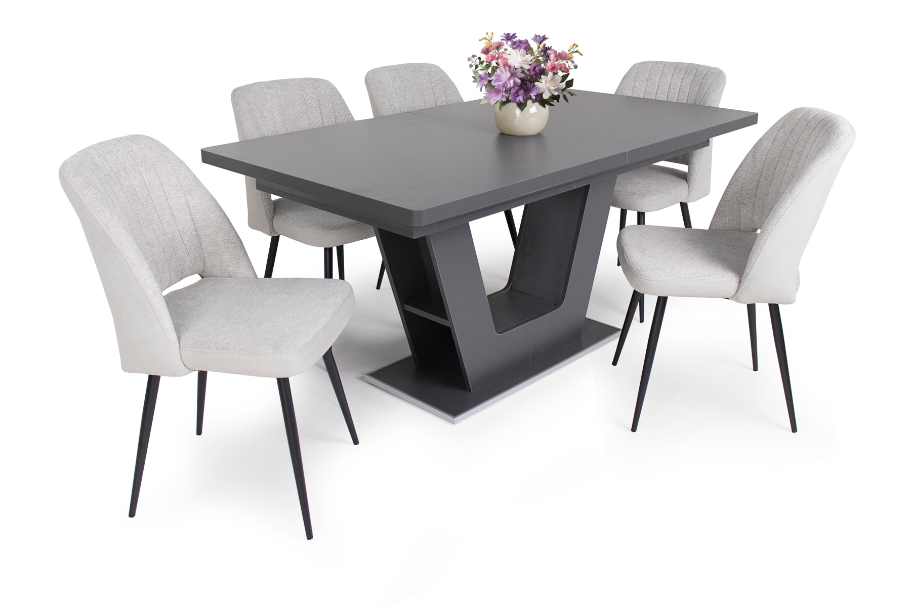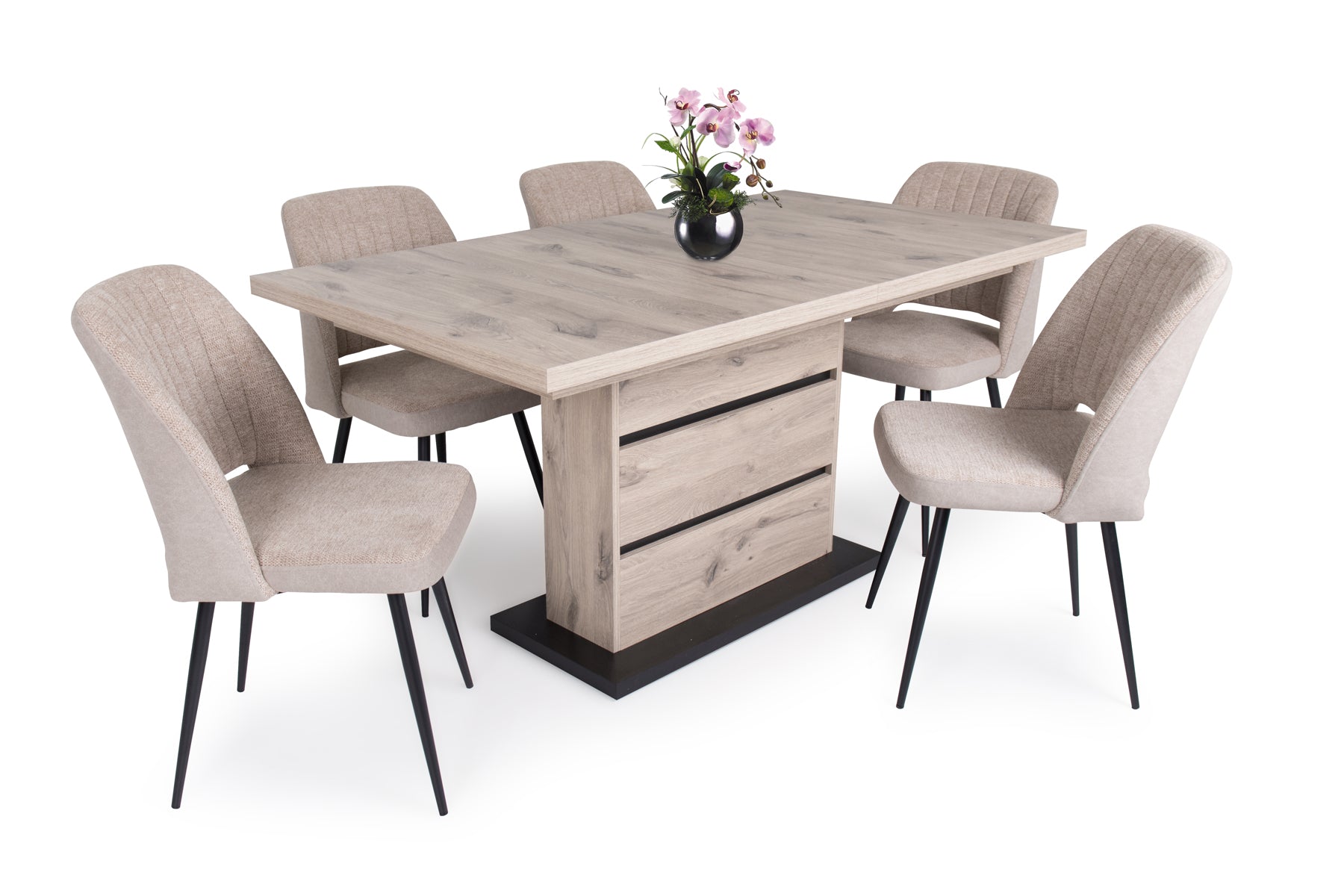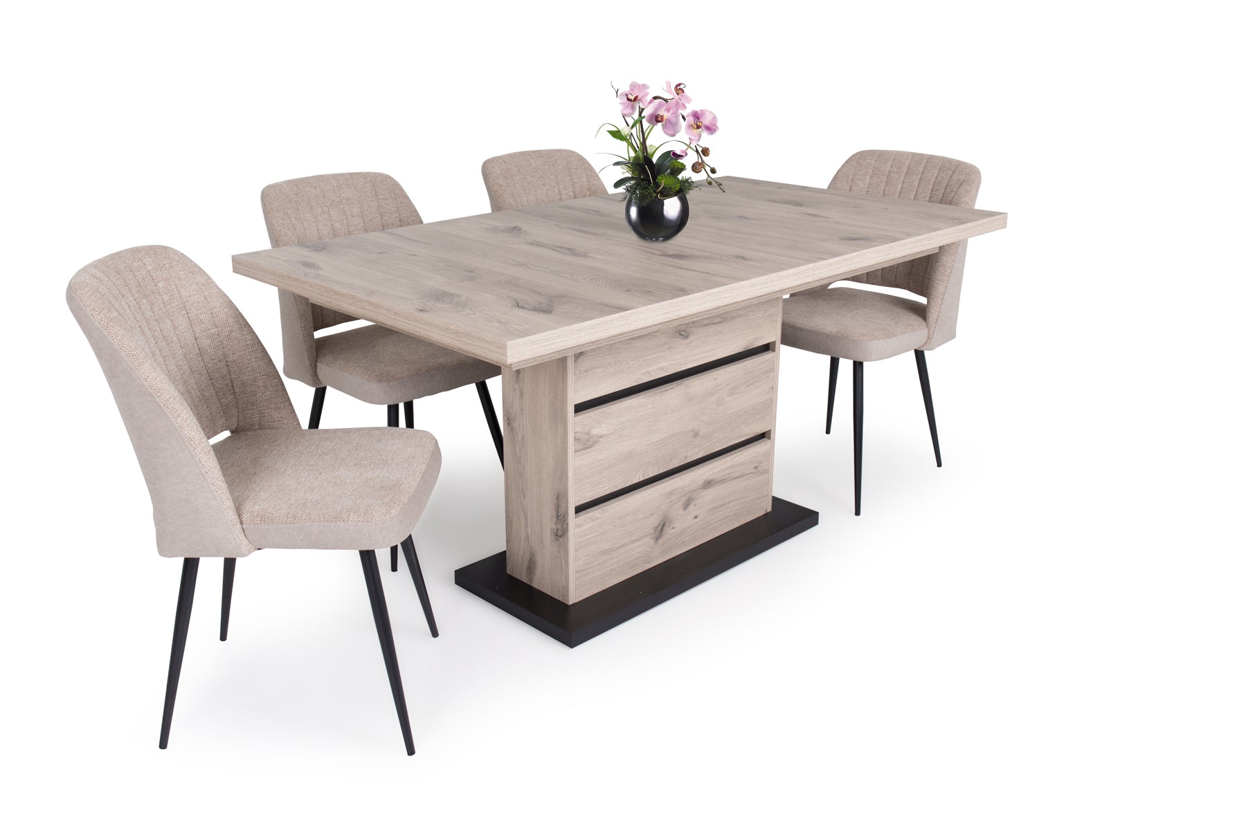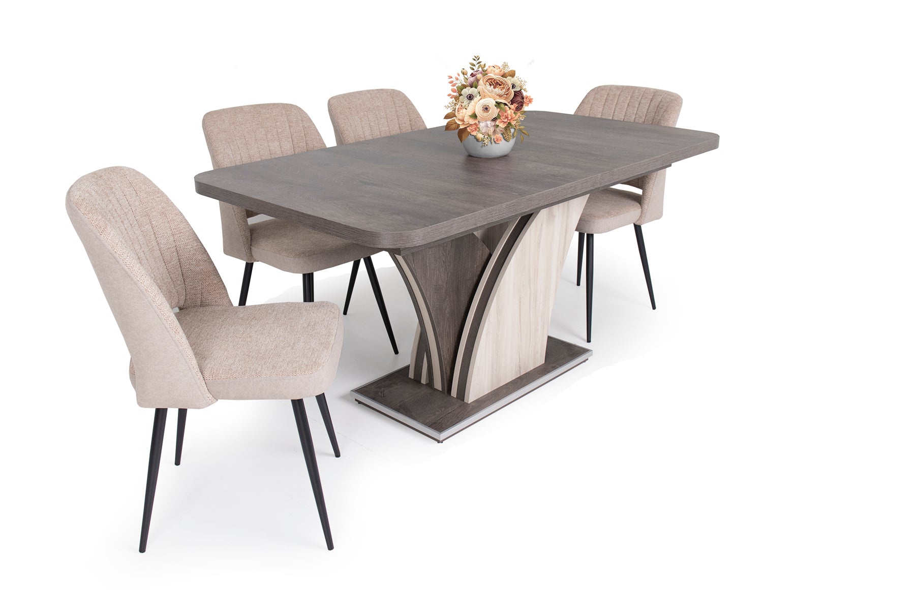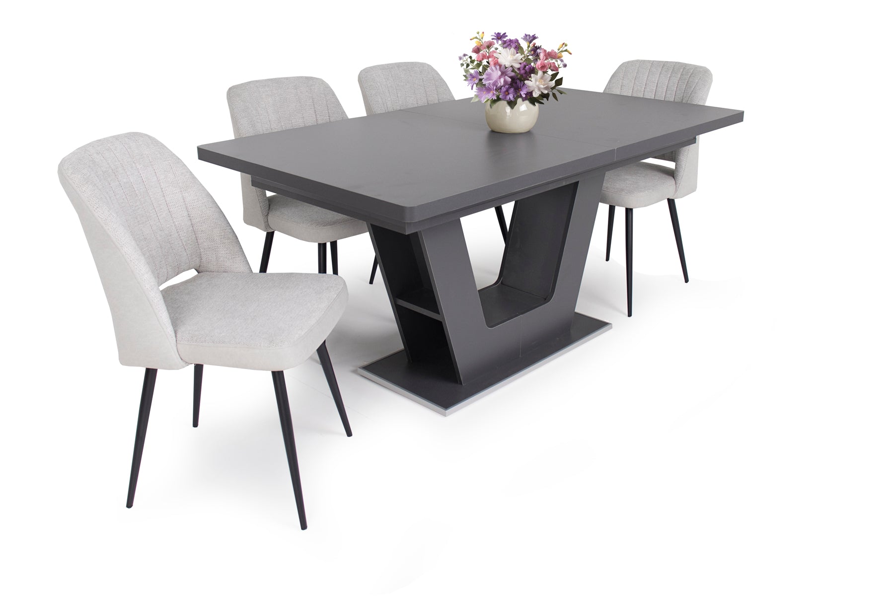Az Odett szék szövet – velúr kárpittal és fekete festett lábakkal kitűnő kiegészítője a modern otthonoknak. Három színben érhető el: világosszürke, világosbarna és szürke.
