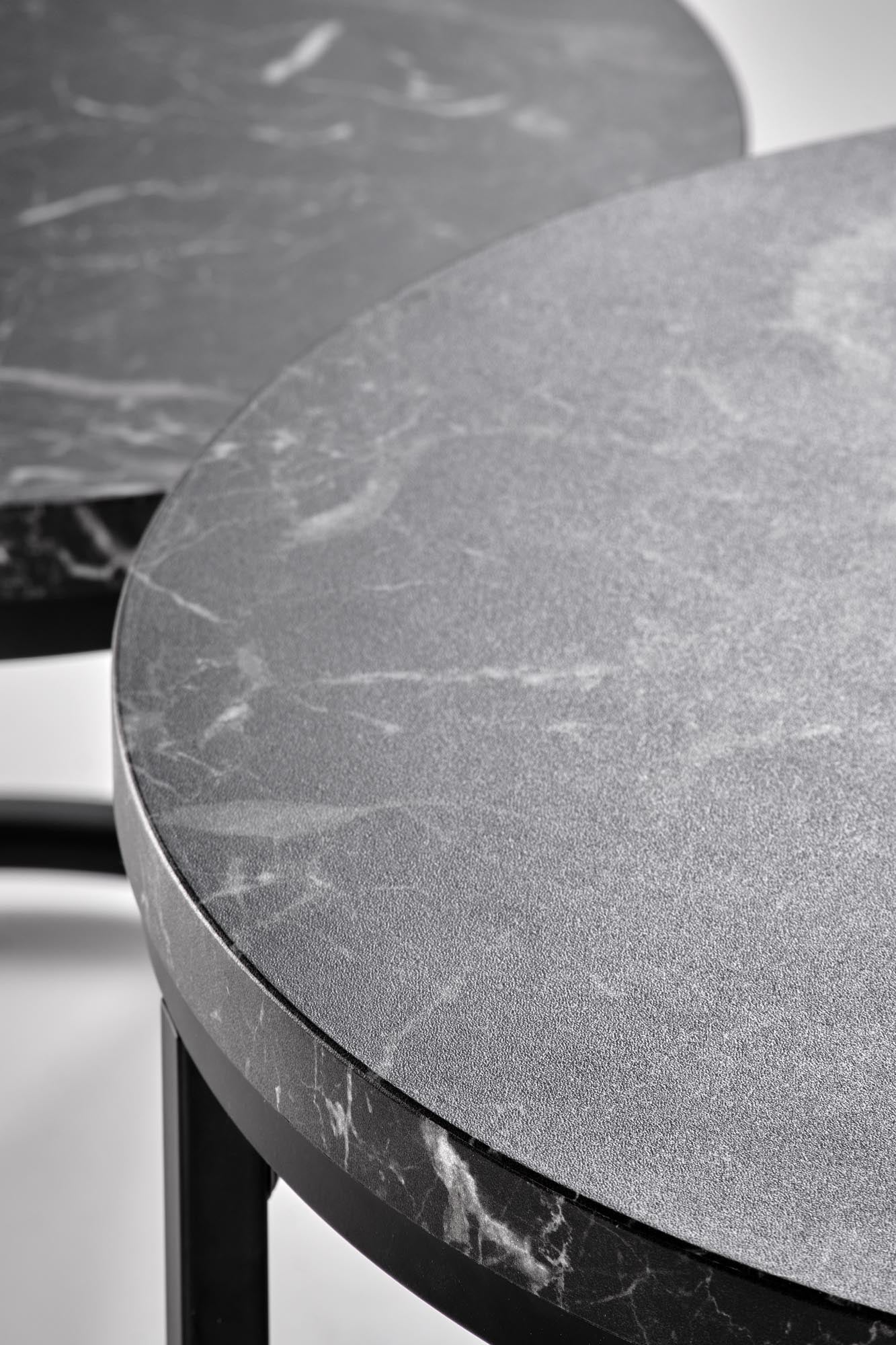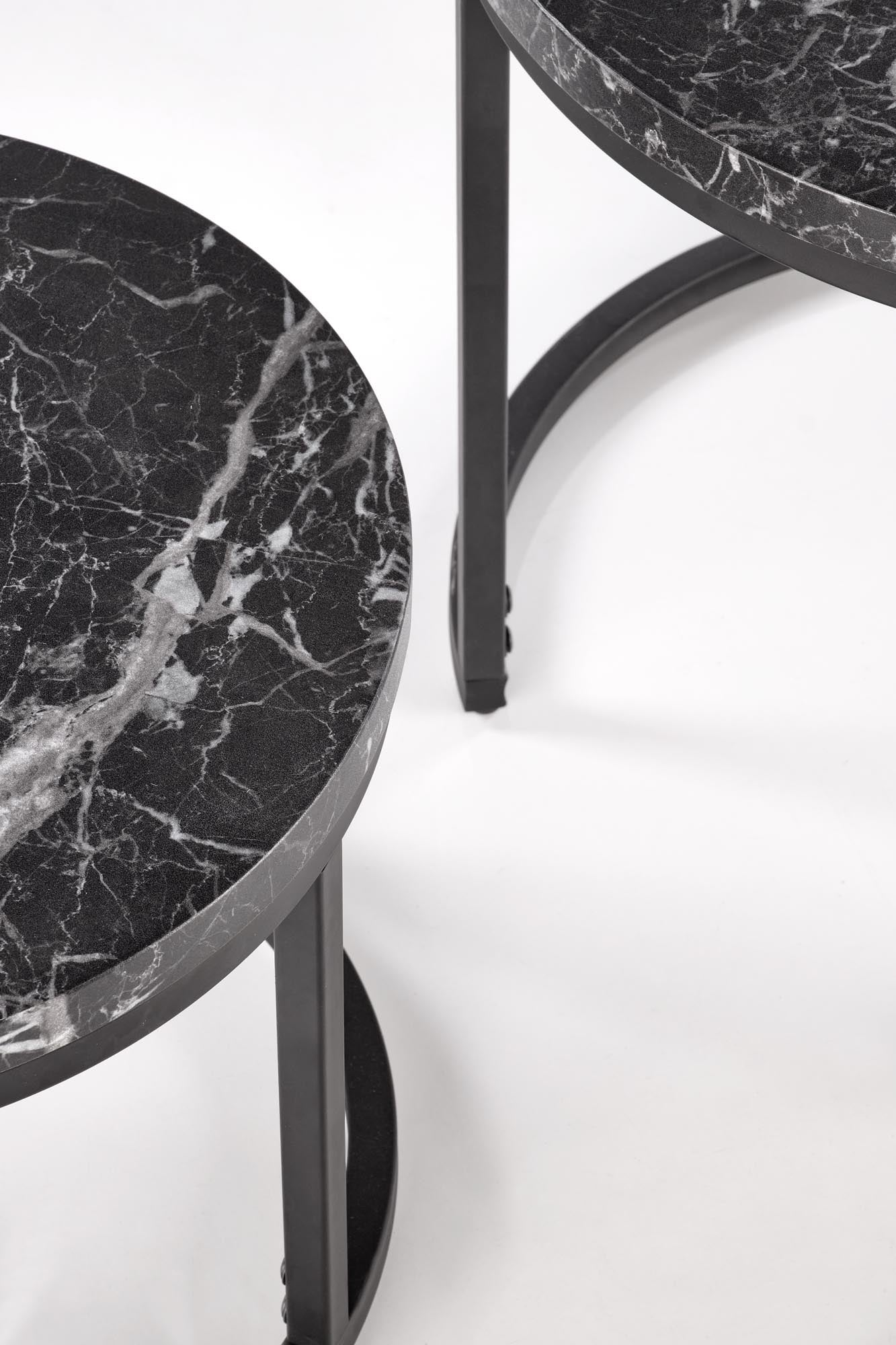 wymiary: nagy - fi53/45 cm, kicsi - fi43/35 cm, két részből álló, anyaga: laminált MDF / porszórt acél, szín: fekete márvány / fekete