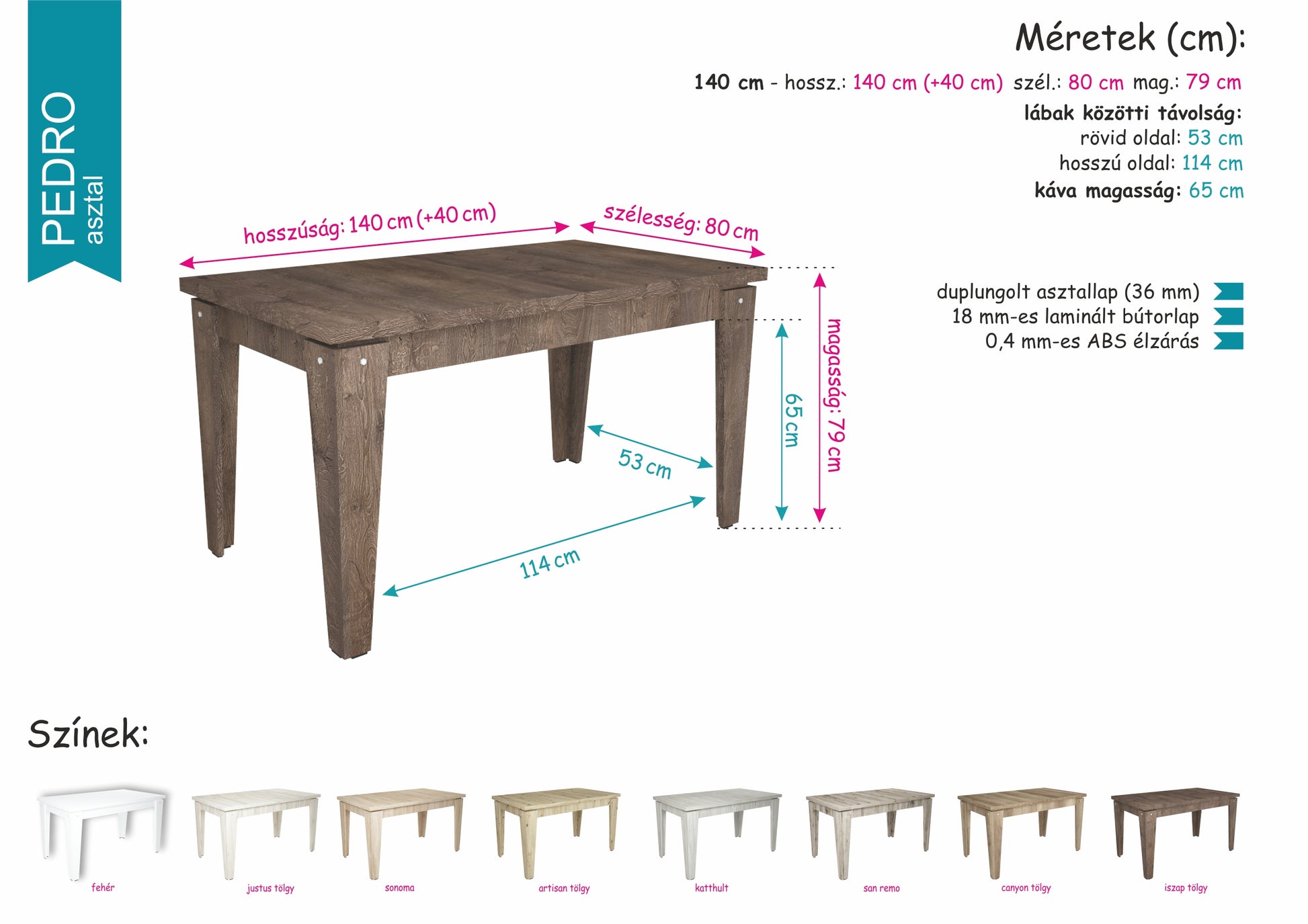 Pedro asztal iszap tölgy