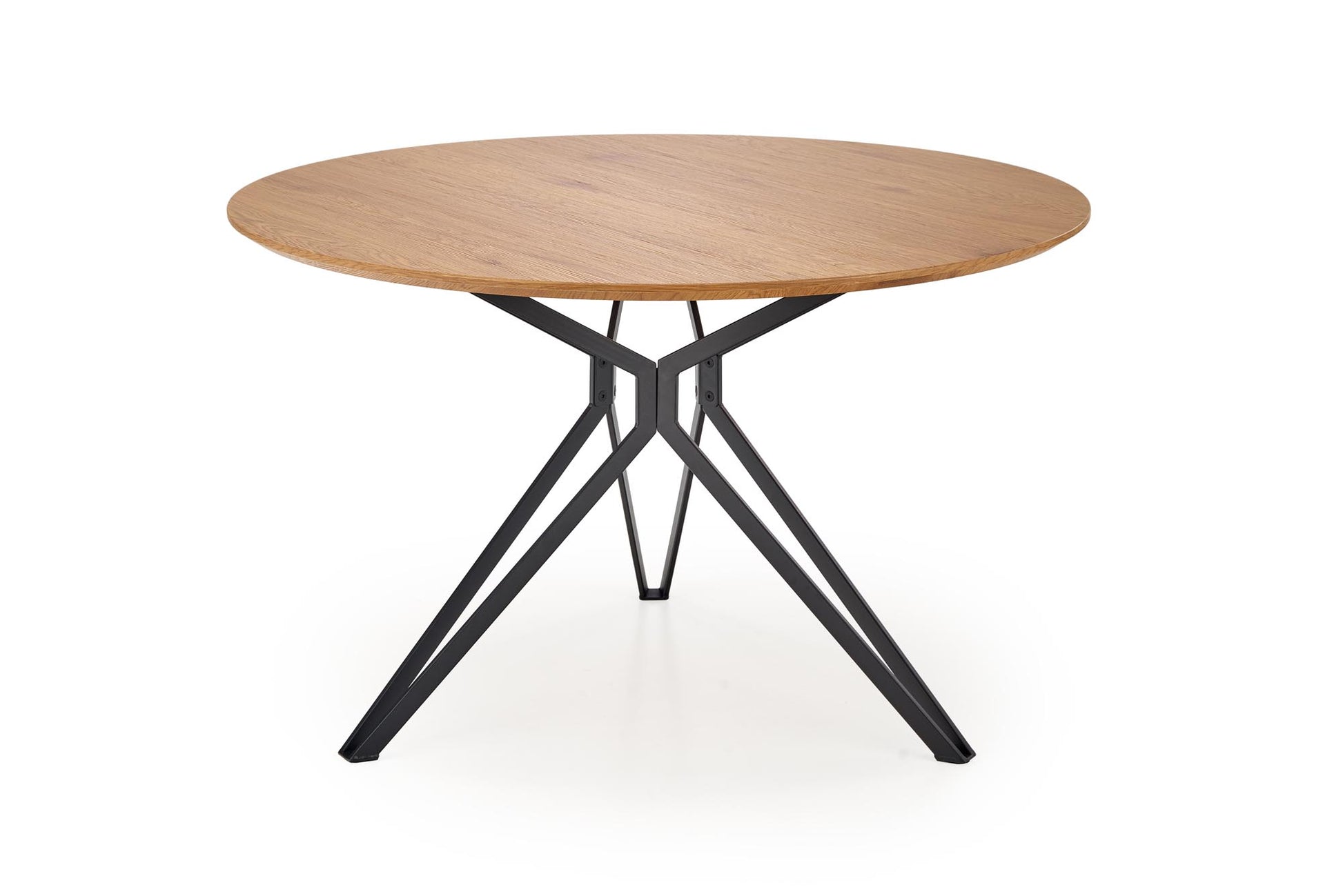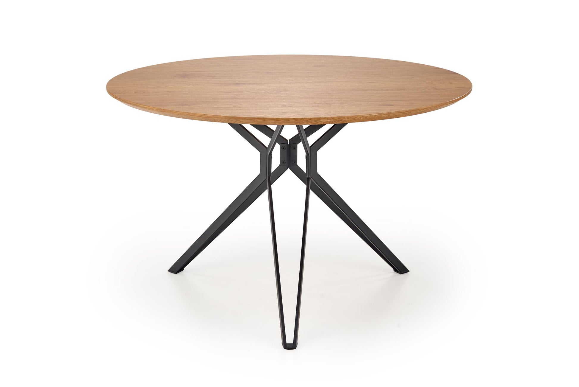méretek: fi120/76 cm, anyaga: laminált MDF / porszórt acél, szín: asztallap - aranytölgy, keret - fekete