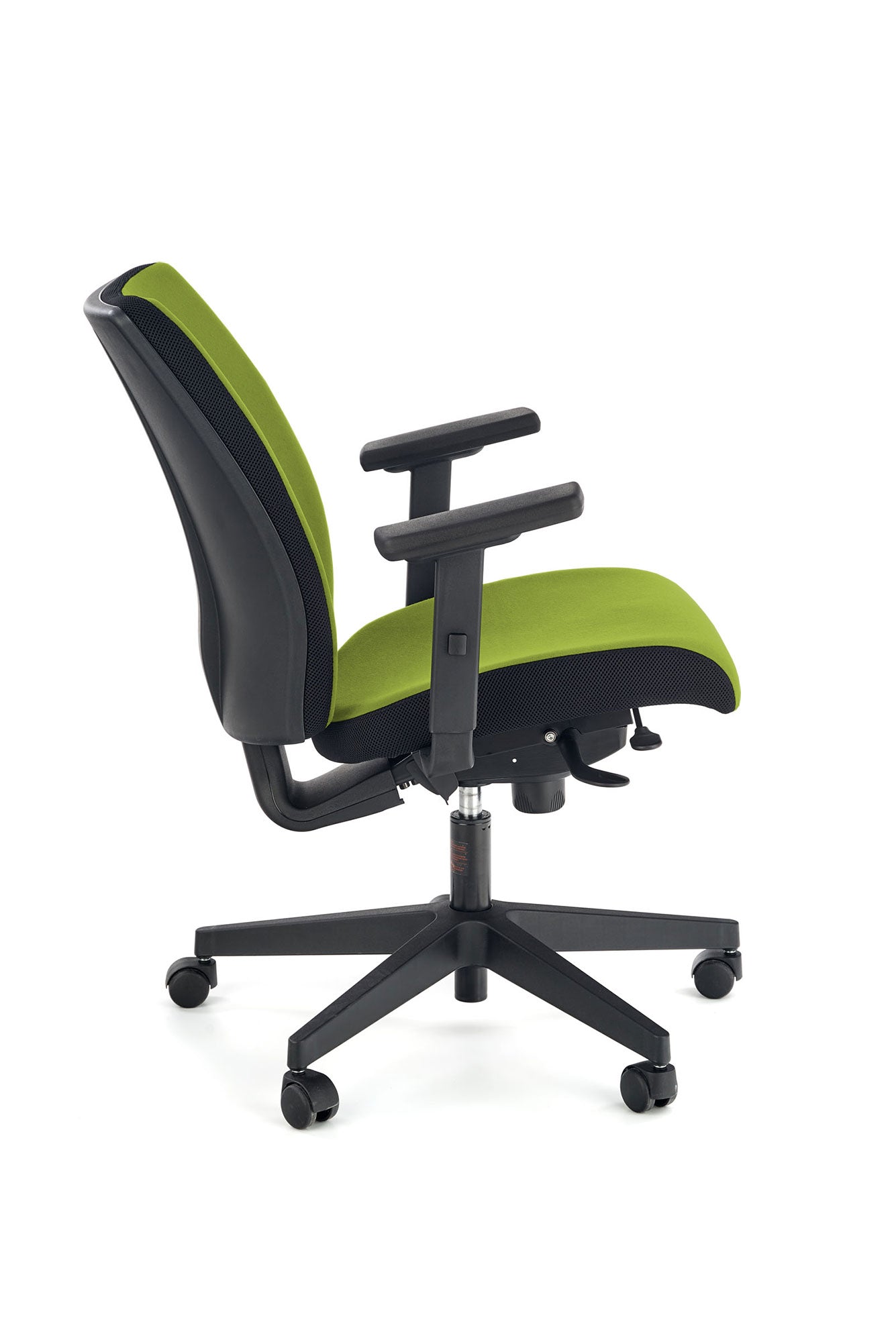 szinkron mechanika, toló ülés, két pozícióban állítható karfa, méretek: 93-108/68/65/48-63 cm, anyaga: szövet, szín: fekete / zöld