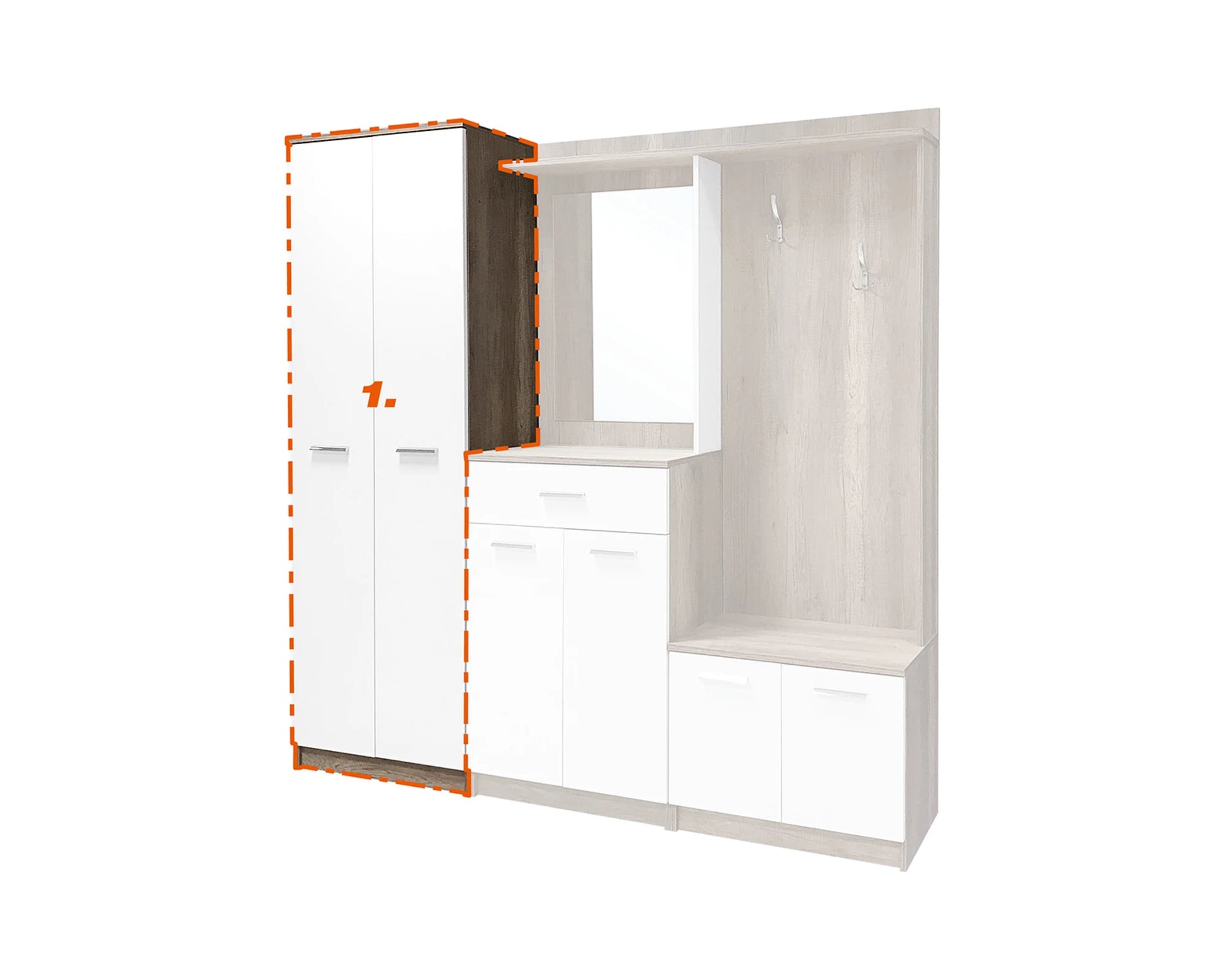 Egyéb: ajtajai mögött két polc és egy kihúzható vállfatartó található.