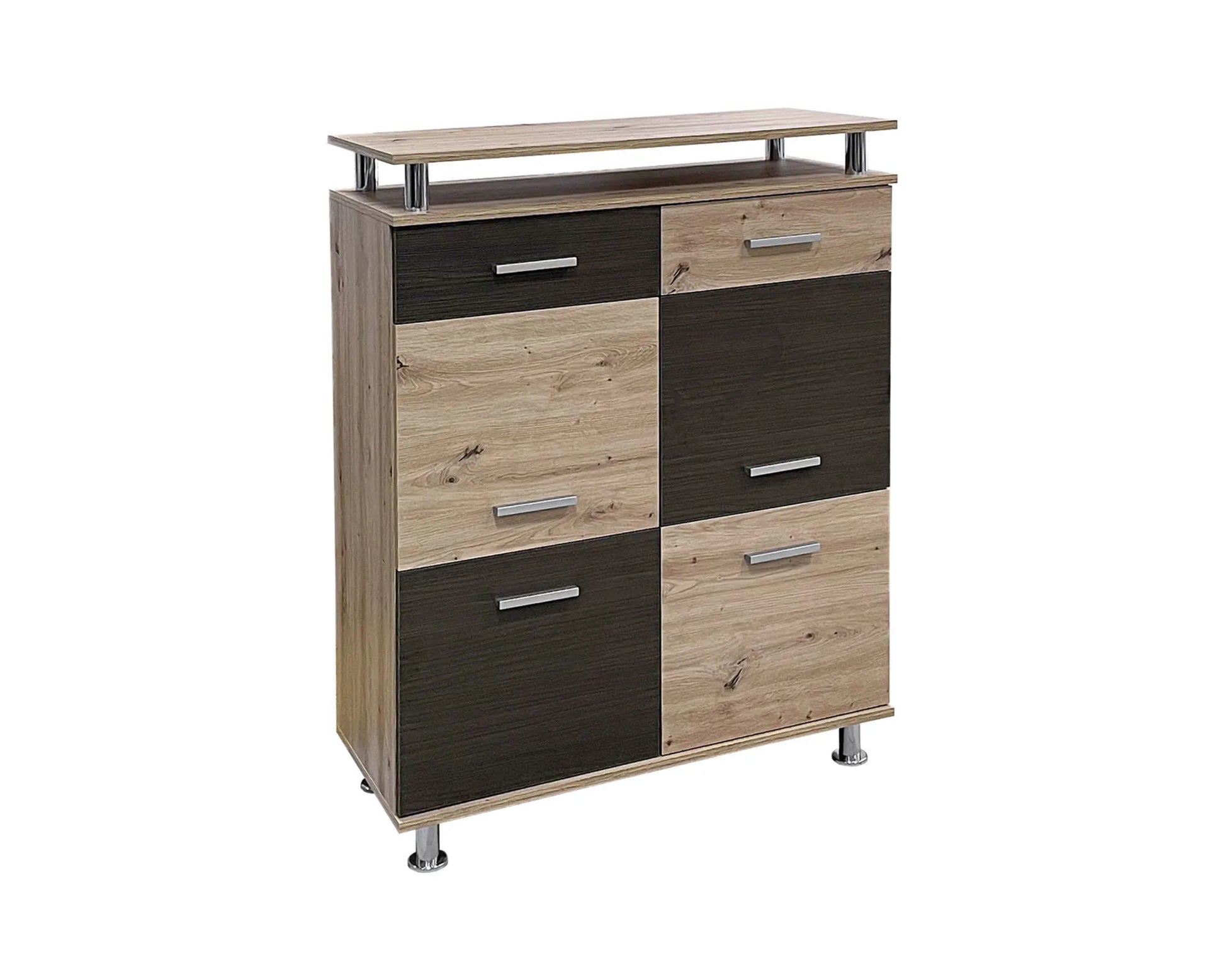 Bútorlap vastagsága: 18 mm Kivitel: összeszerelt Élzárás: 0,5 mm ABS Hátlemez: 3 mm HDF Az ajtók mögött két polc található.