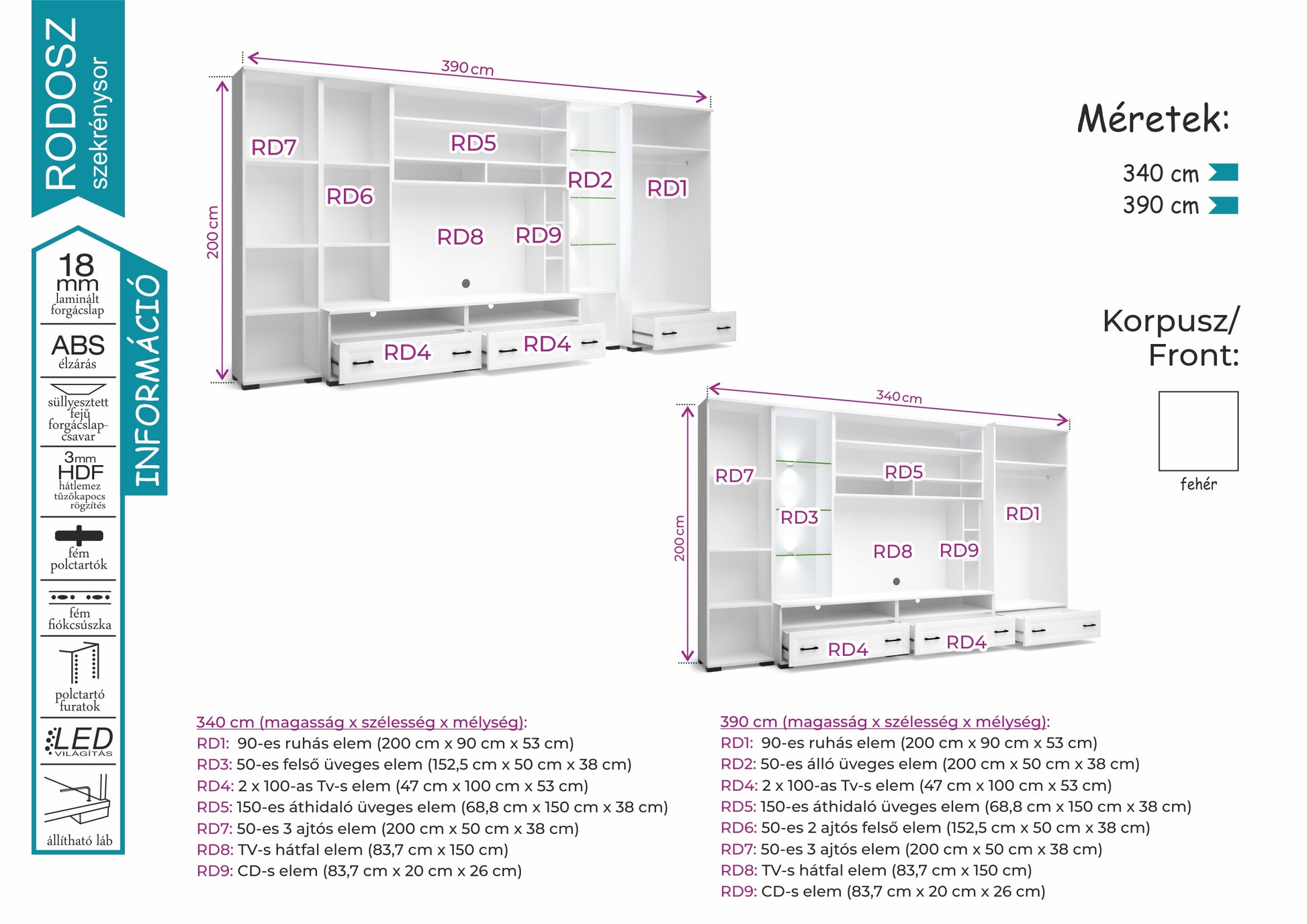 Rodosz szekrénysor 340cm és 390cm-es méretben
